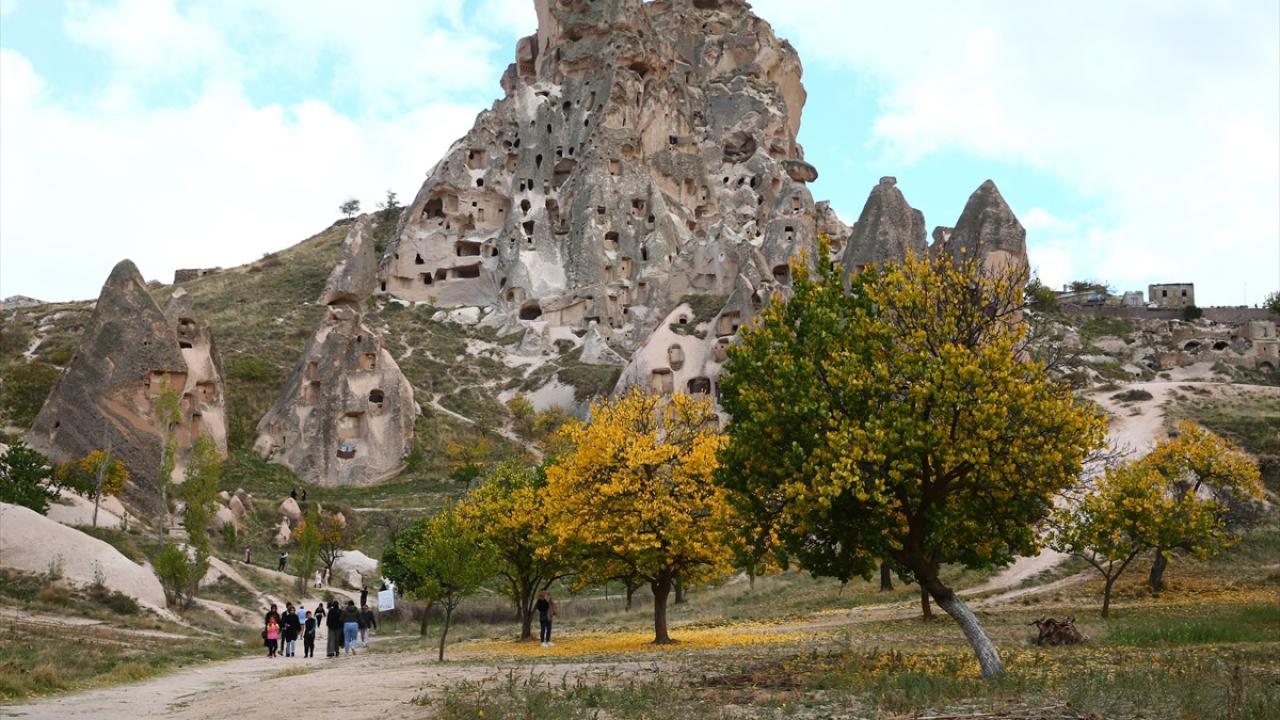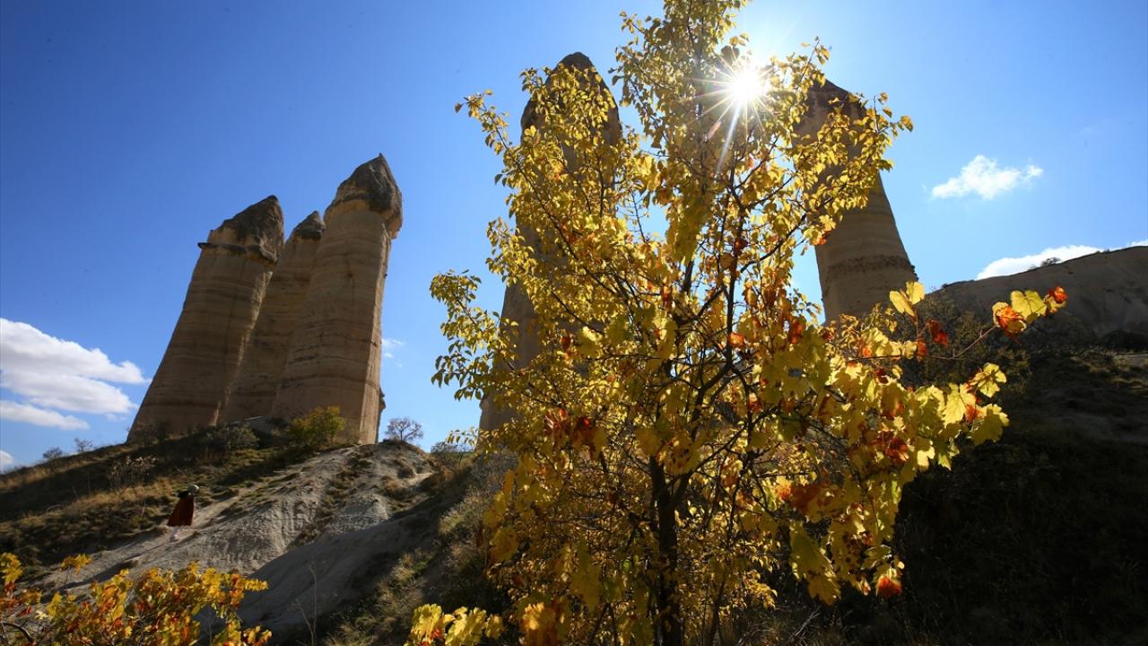 Peribacaları, doğal kaya oluşumlarıyla kaplı vadileri, yer altı şehirleri, kayadan oyma tarihi manastırları ile Türkiye'nin gözde turizm merkezlerinden Kapadokya, sonbahar renkleriyle donandı.