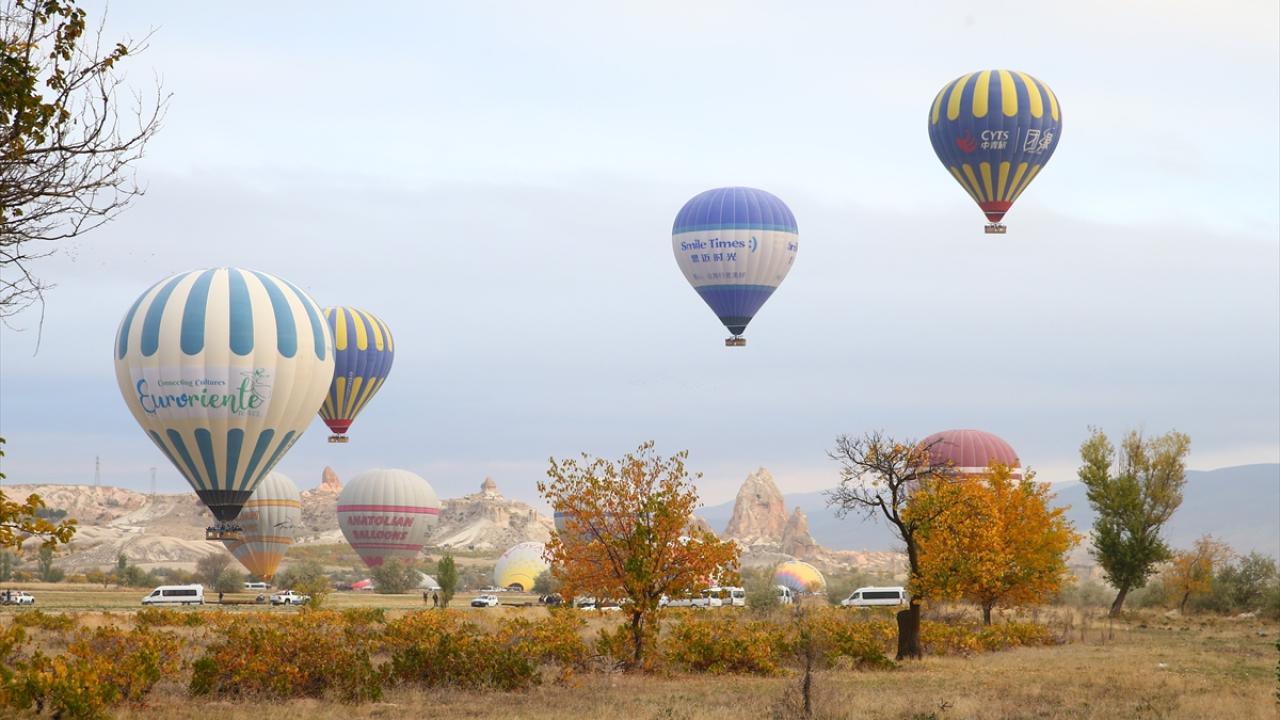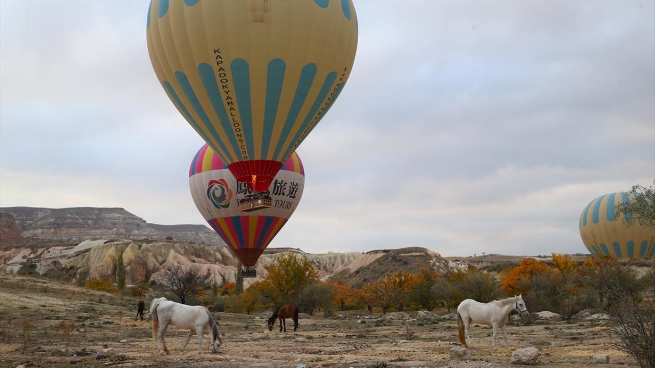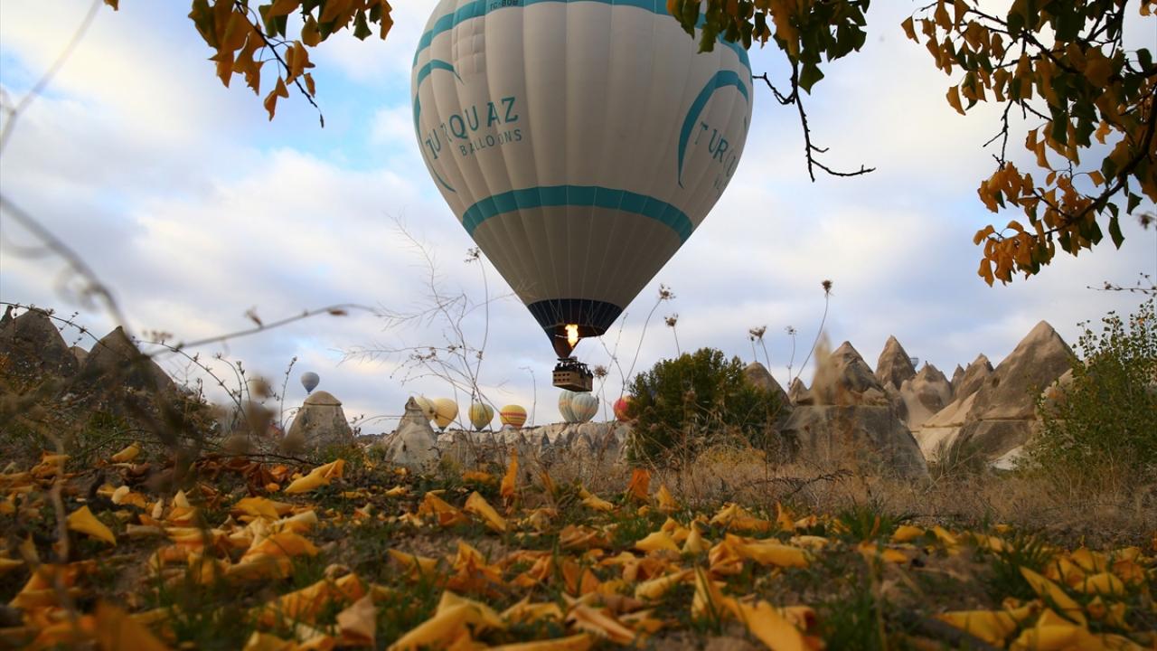 Bölgede hava koşullarının elverişli olduğu günlerde gün doğumu vaktinde yükselen sıcak hava balon turuna katılan turistler, mevsimin sunduğu güzelliği kuşbakışı izleyebiliyor.
