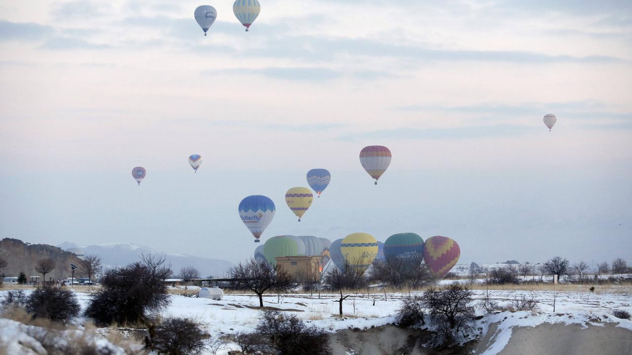Konuklarına masalsı bir görünüm sunan Kapadokya`daki tarihi, kültürel ve doğal güzellikleri ziyaret eden turistlerin bu alanları kuş bakışı izlemesine imkan sunan balon turlarının, hava tahminlerine göre önümüzdeki günlerde yeniden başlaması bekleniyor.