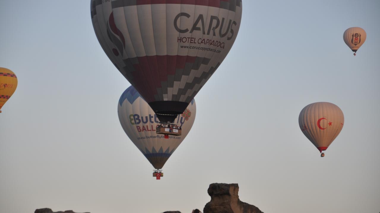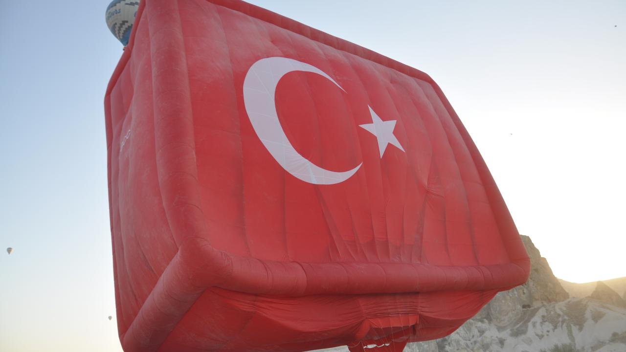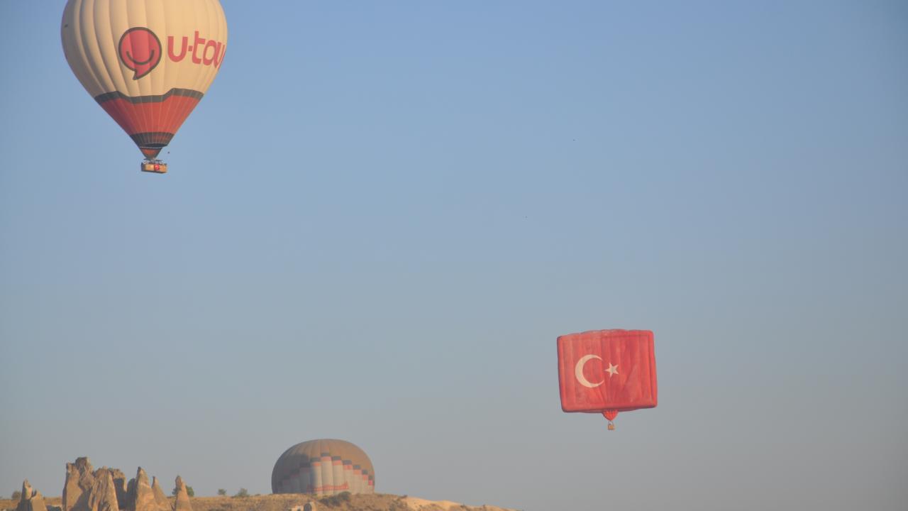 Nevşehir Kapadokya'da 30 Ağustos Zafer Bayramı'nın 100. yıl dönümü dolayısıyla sıcak hava balonları Türk bayraklarıyla havalandı.
