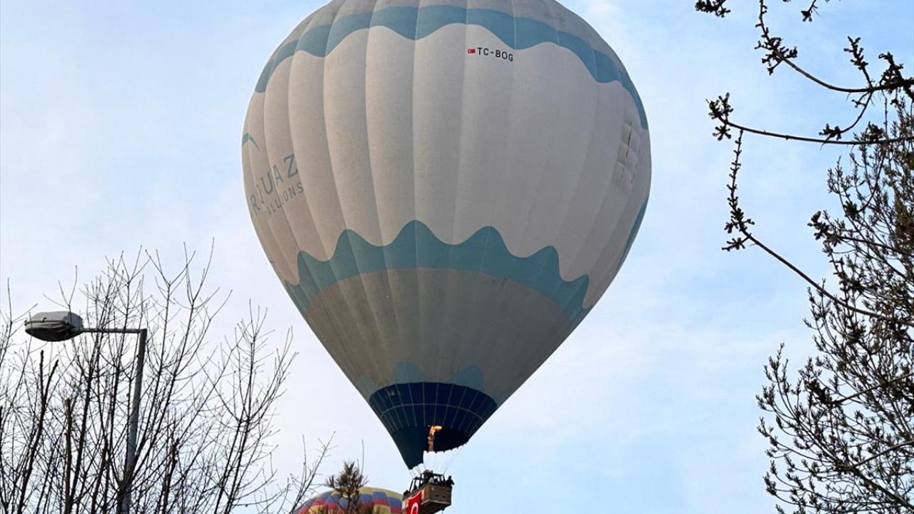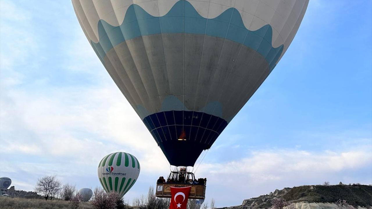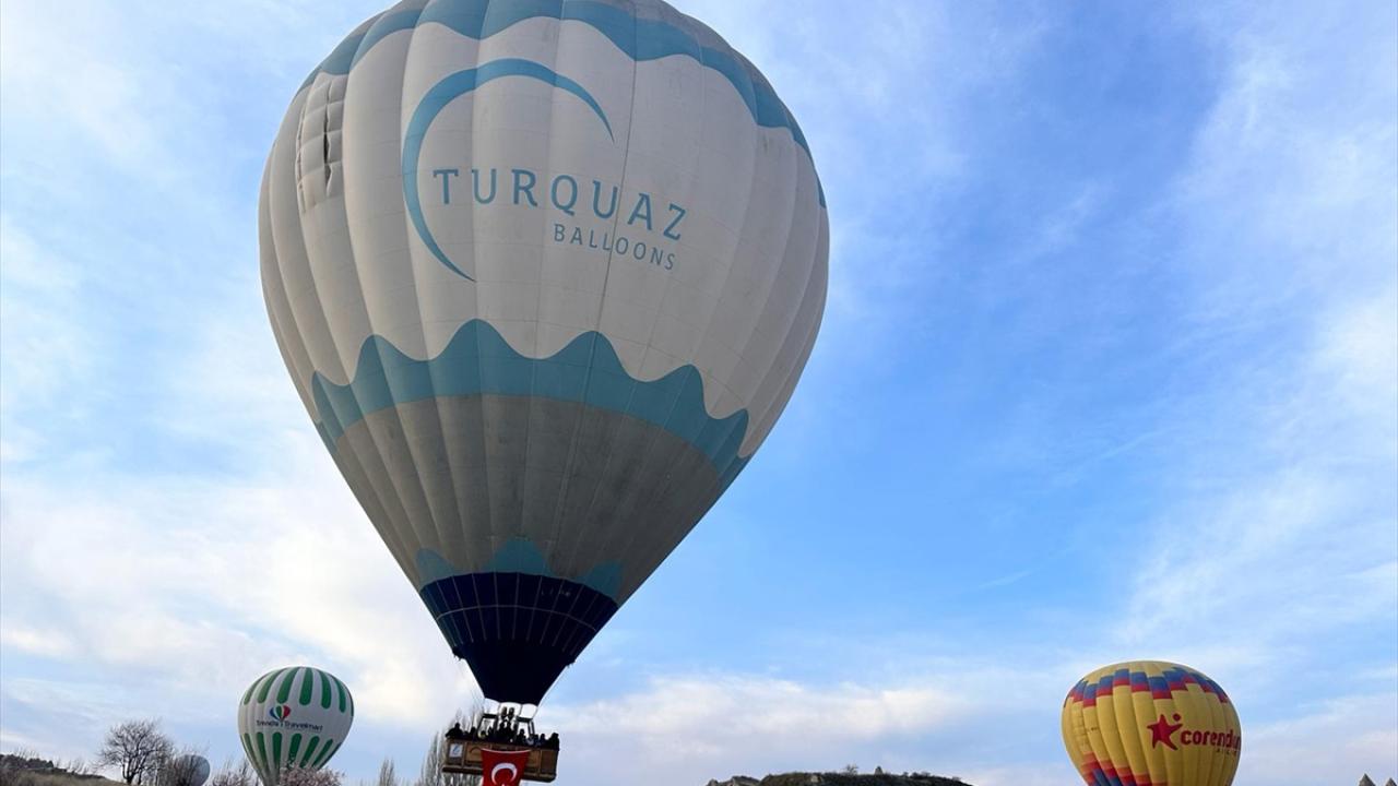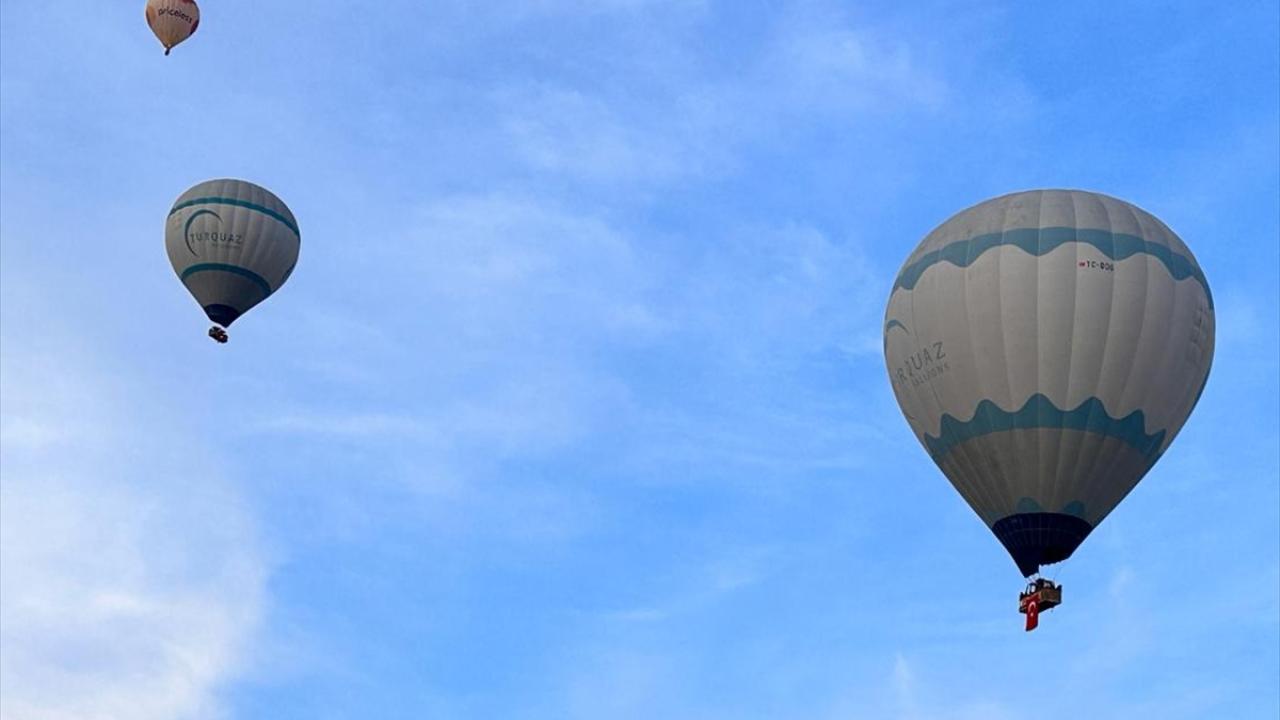 Türk bayrağı taşıyan balonlar Kılıçlar ve Güllüdere vadilerinde yaklaşık bir saat boyunca uçuş gerçekleştirdi.
