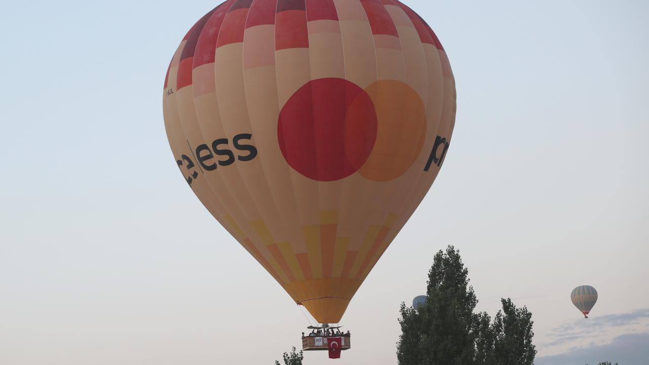 Nevşehir`in Göreme beldesi ile Çavuşin köyü çevresindeki kalkış alanındaki balonların sepetlerine görevlilerce Türk bayrakları ve posterler asıldı.