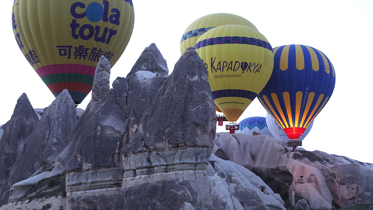 Balonlar, Göreme beldesi çevresindeki kalkış alanlarından peş peşe gökyüzüne yükseldi.