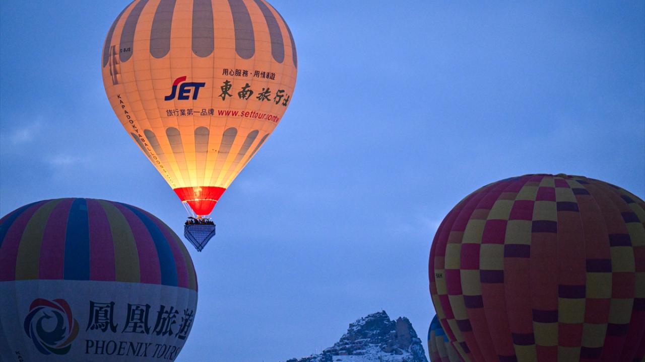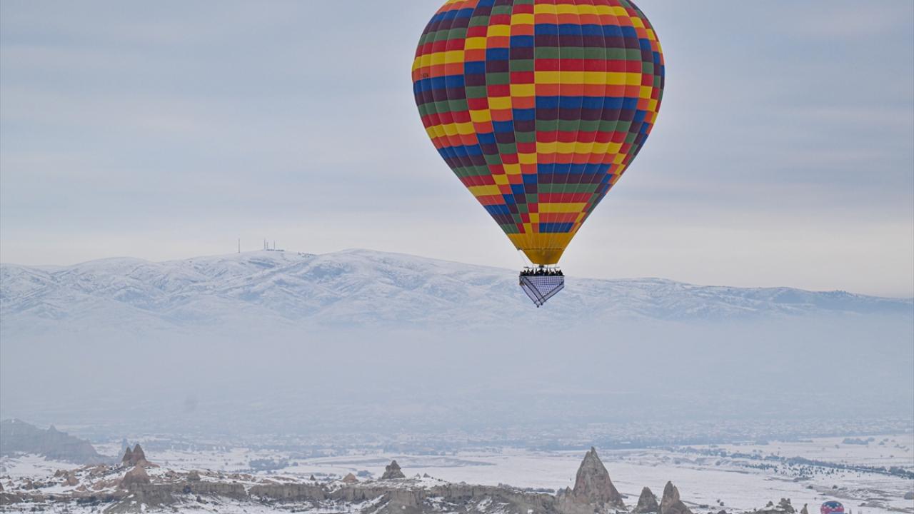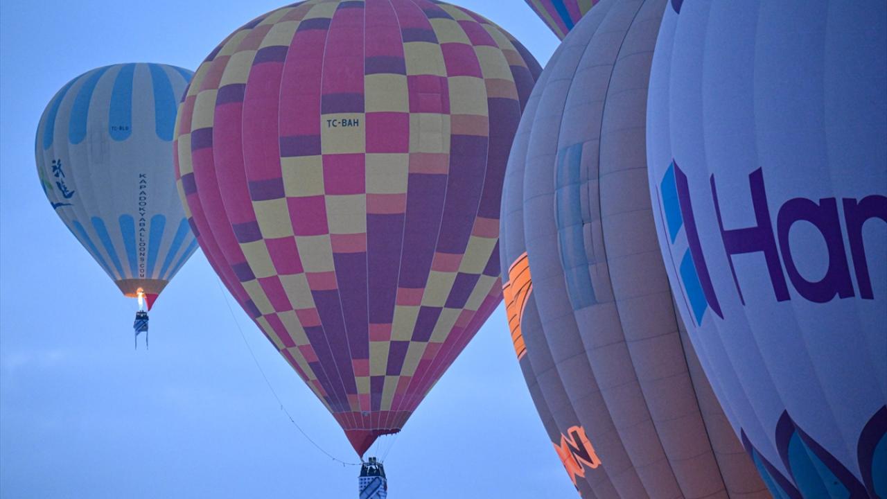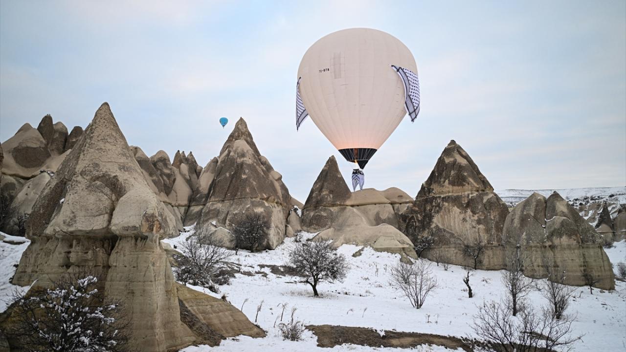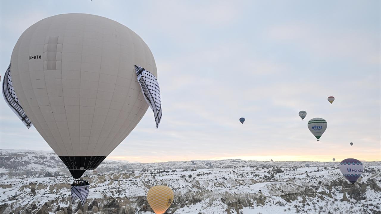 Gazze'de yaşanan soykırım Kapadokya'da özgürlüğü simgeleyen kefiye desenli sıcak hava balonlarıyla protesto edildi.
