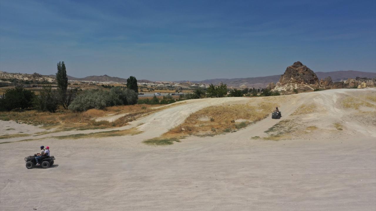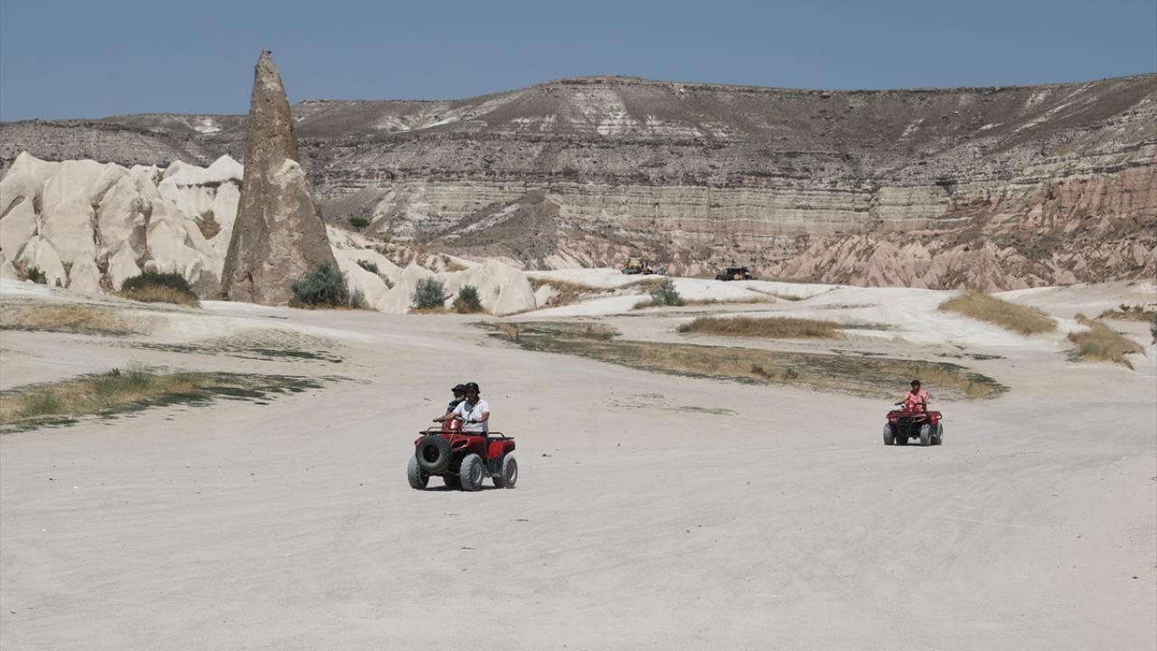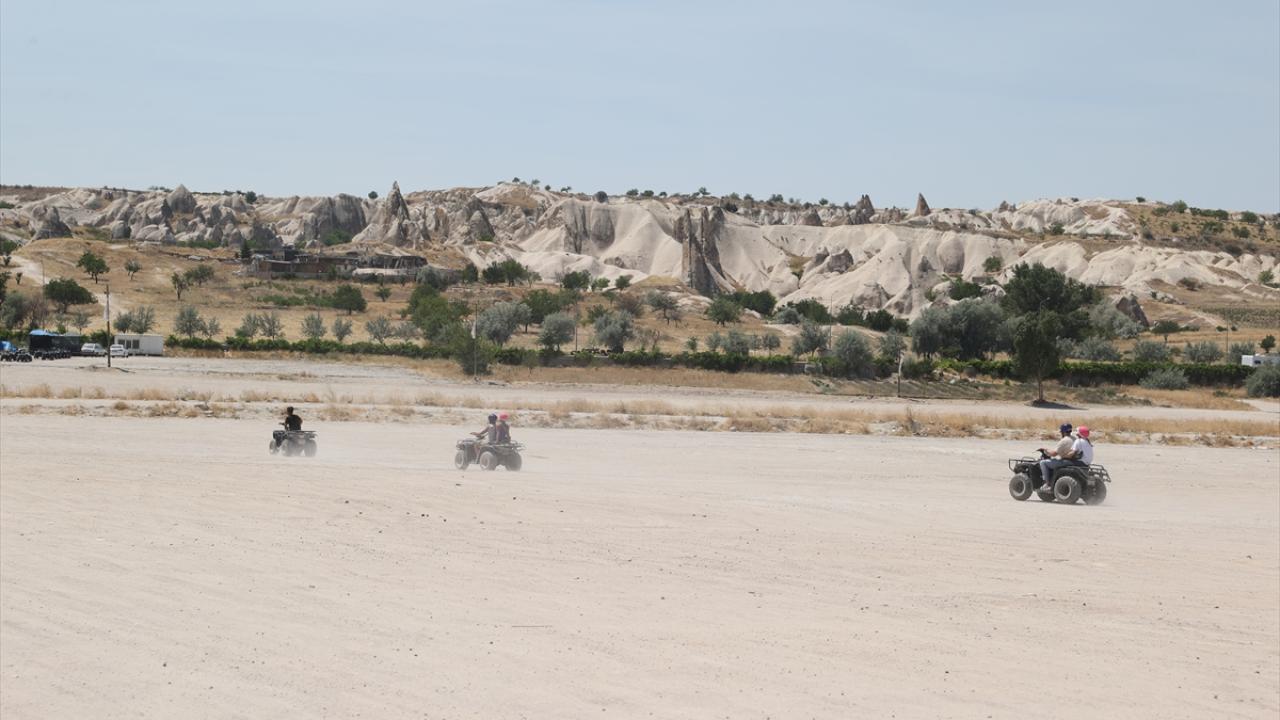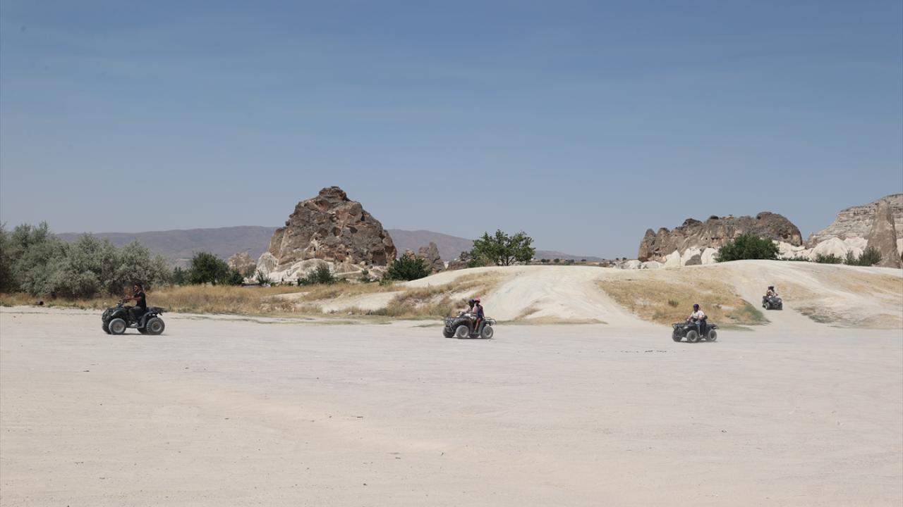 Bazı turistler ise bunaltıcı sıcağa aldırış etmeden ATV arazi araçları veya yaya olarak vadileri keşfetmeye devam ediyor.