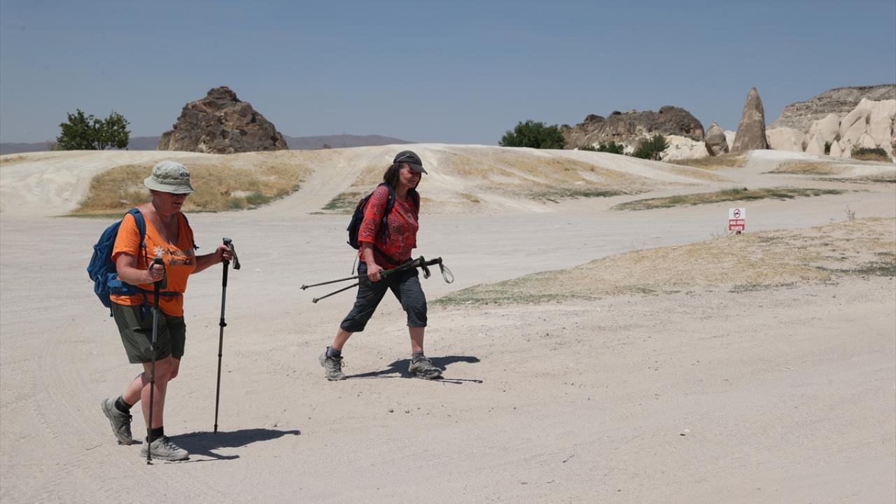 Bölgede doğa yürüyüşü yapan Fransız turist Sabina Marche ise otelden ayrıldıktan sonra yürüyerek vadilerde gezinti yaptıklarını belirterek, bunaltıcı sıcakların kendileri için yorucu olabildiğini ama çantalarında suyu eksik etmediklerini dile getirdi.