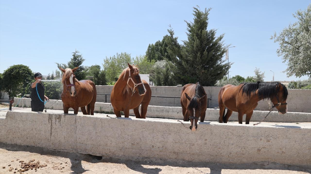 Kapadokya Atçılık Kültür Derneği Başkanı Mehmet Uçman, öğle saatlerinde sıcağın etkisini artırmasıyla çiftliklerdeki atların suyla serinletildiğini belirtti.