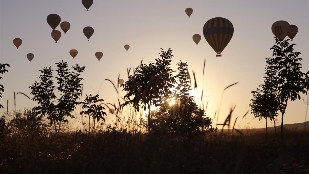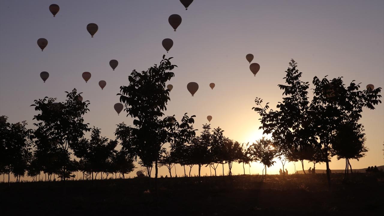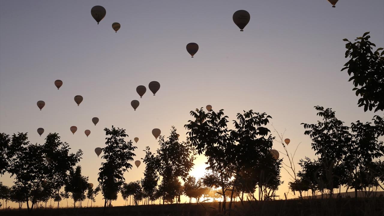 Bölgede, gün doğumu vaktinde ekiplerce hazırlanan 150 sıcak hava balonu gökyüzüne yükseldi.