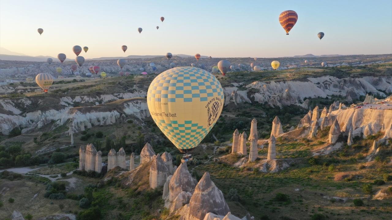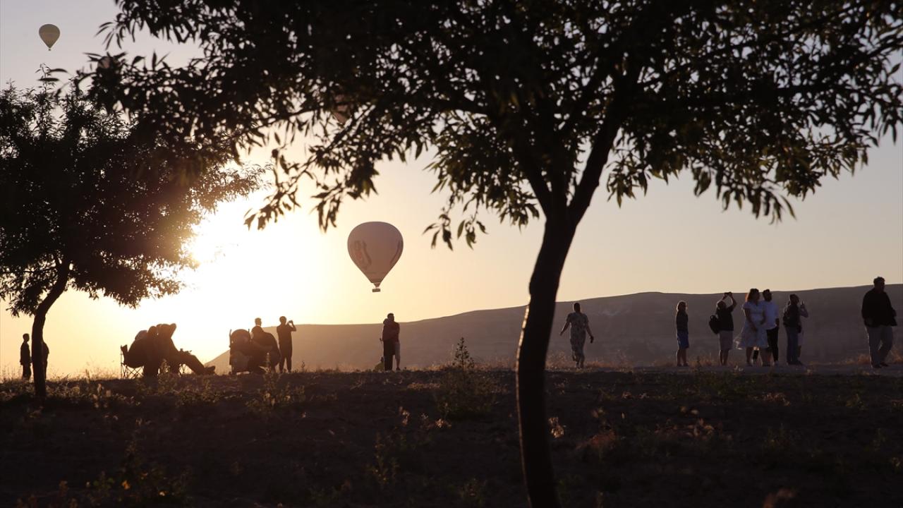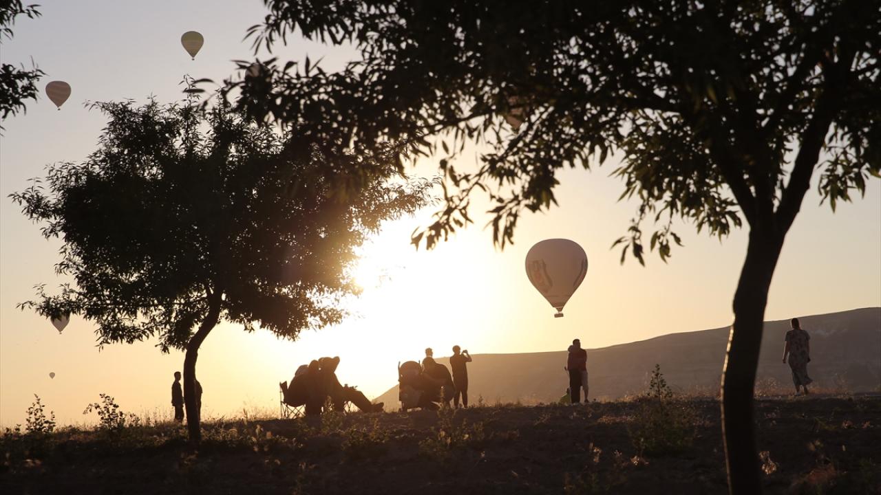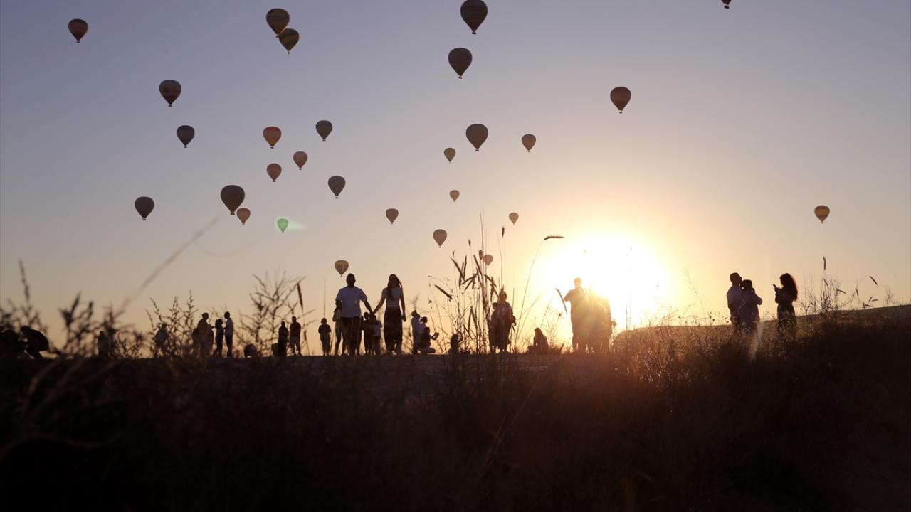 Turistleri taşıyan balonlar, yaklaşık bir saat boyunca bölge semalarında süzüldü.