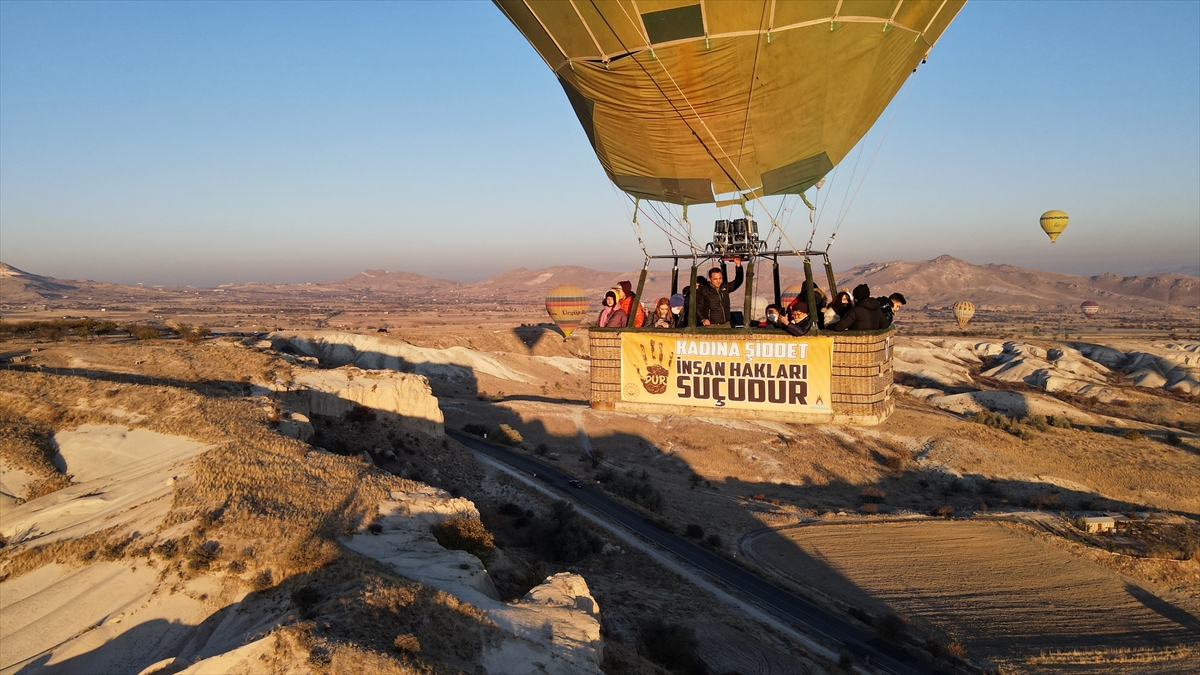 Sıcak hava balonları, "Kadına değil, şiddete el kaldırın", "Kadına şiddet insanlık suçudur", "Şiddet gördüğümde ya da tanık olduğumda korkmuyorum, sessiz kalmıyorum" yazılı afişlerle Göreme beldesinden gökyüzüne yükseldi.