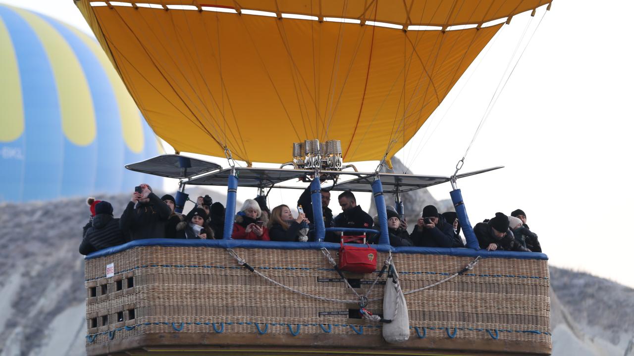 Yerli turistlerden Melike Çapacı da sabahın ilk ışıklarıyla balonların gökyüzüne yükselmesinin manzaraya renk kattığını dile getirerek, "Yılın ilk güneşini balonda karşıladık. Etrafta yüzden fazla balon vardı, çok güzeldi, keyifle çevreyi izledik." diye konuştu.
