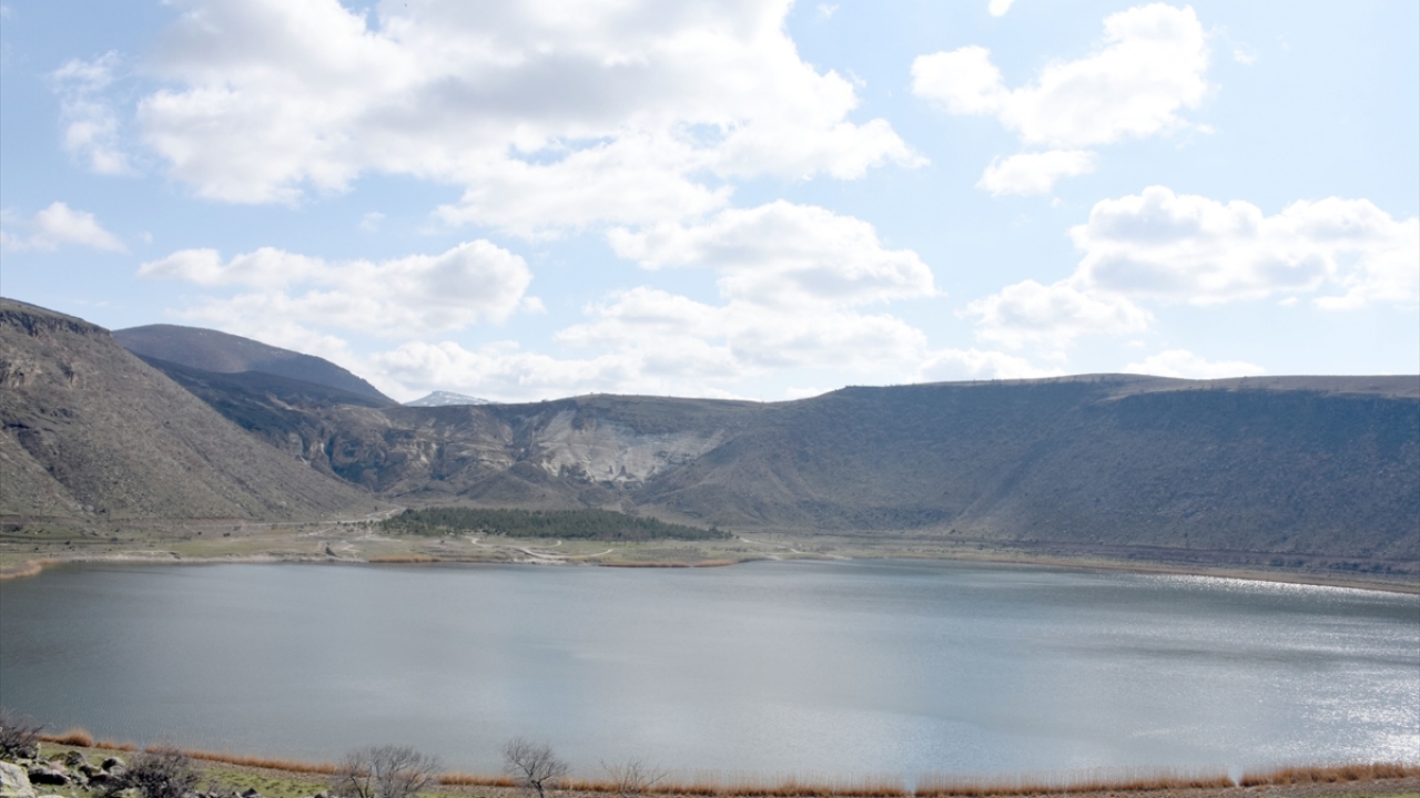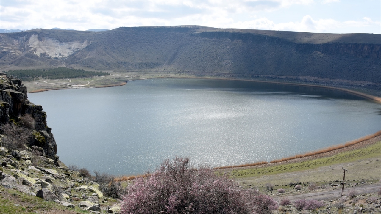 Kapadokya bölgesinde kalp görünümündeki Narlıgöl, ilkbaharın gelmesiyle eşsiz bir güzelliğe büründü.