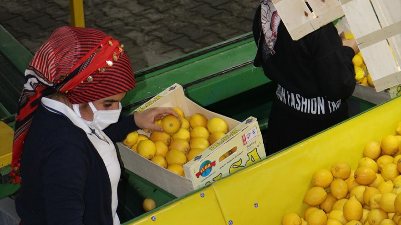 Limonlar, ebatlarına göre ayrıldıktan sonra işçilerce paketlenip tırlara yükleniyor. Ürün, daha sonra yurt içi ve dışı pazara sevk ediliyor.