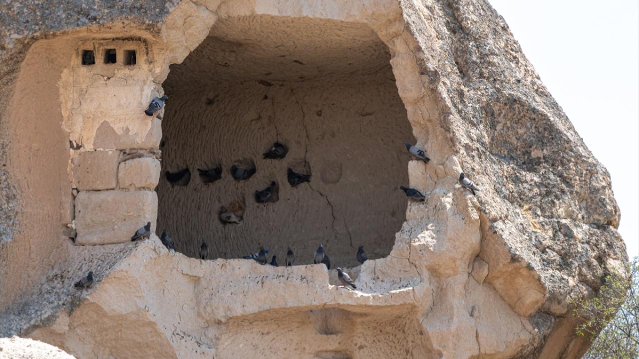 Kapadokya’nın vadilerinde kayalara oyulmuş güvercinlikler, hem güvercinlerin barınma alanı hem de doğal gübre kaynağı olarak bölge tarımına katkı sağlıyor.