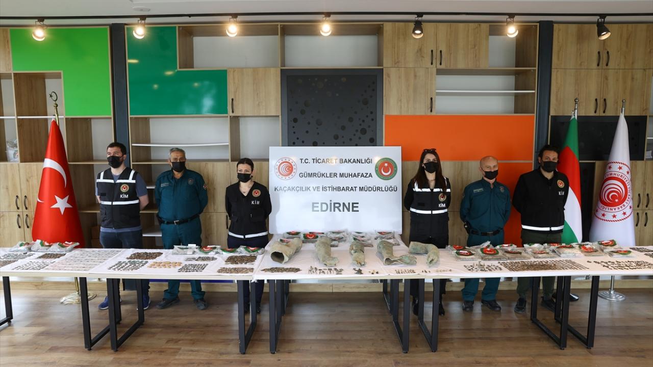 Açılan paketlerde çeşitli türlerde toplam 66 kalemde 15 bin 751 taşınır kültür varlığı olduğu değerlendirilen tarihi eser ele geçirilmiş, müze yetkililerinin ön tespitinde parçalar erken Bizans dönemine tarihlendirilmiş, sikke ve bronz heykel parçaları Eserler Edirne Müze Müdürlüğüne teslim edilmişti.