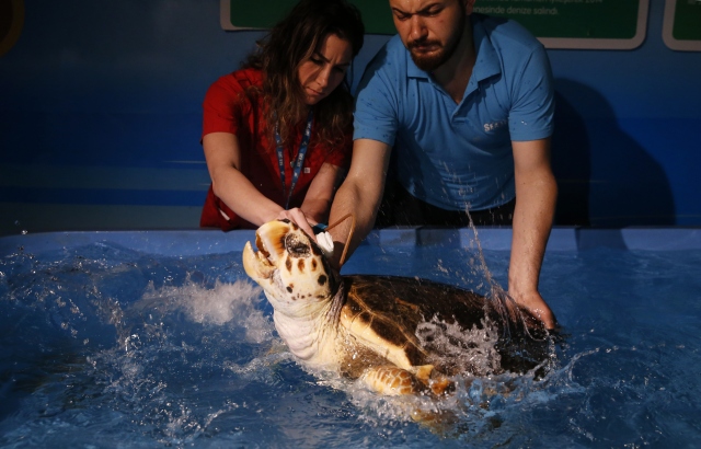 Çanakkale sahilinde başından ağır yaralı halde bulunan caretta caretta cinsi deniz kaplumbağası, Sea Life İstanbul'da, veterinerler tarafından gerçekleştirilen ikinci ameliyatın ardından sağlığına kavuştu. Türkiye'de sürüngenler üzerinde ilk kez uygulanan bal tedavisi yöntemiyle sağlığına kavuşan ve geçirdiği başarılı ameliyatın ardından da yaraları iyice sarılan Dilek'in, 15 Haziran'da denizle buluşturulması planlanıyor.