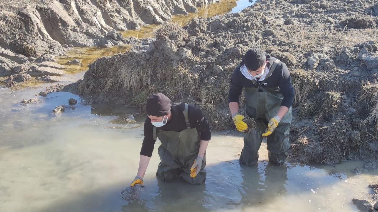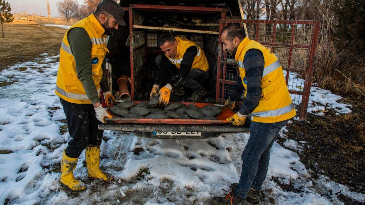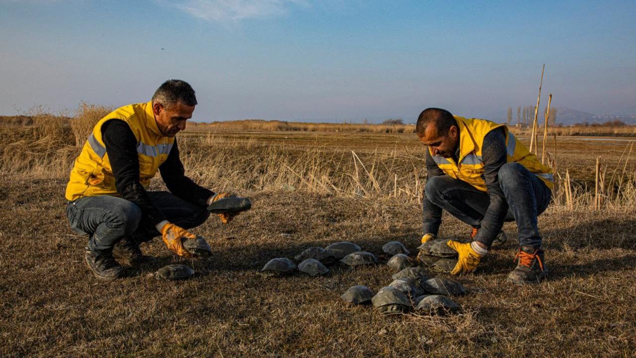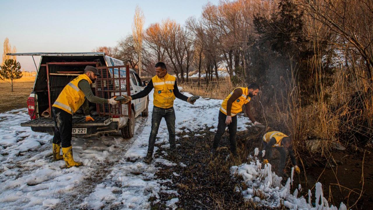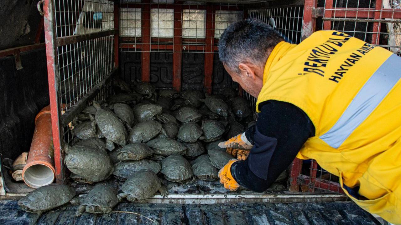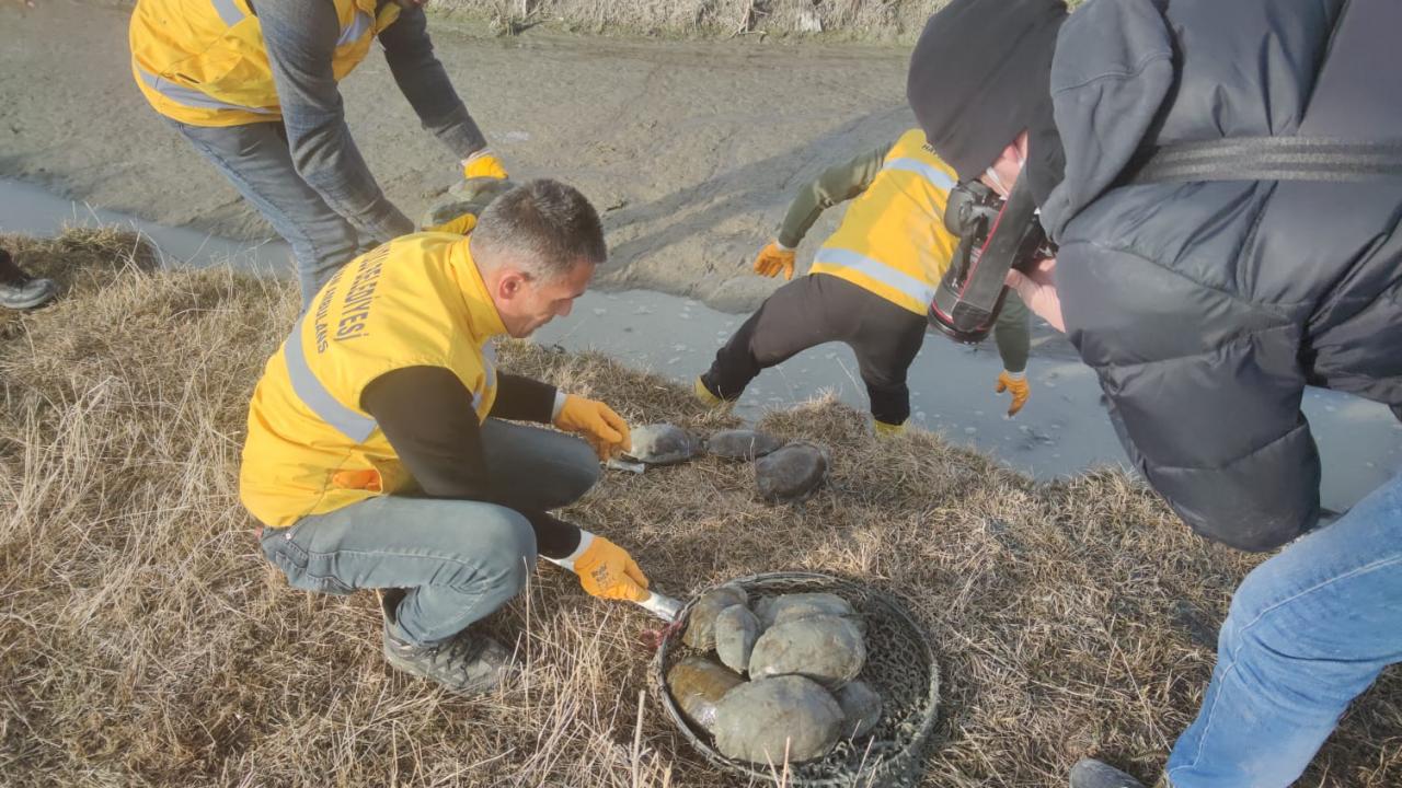 Bölgeye gelen görevlilerle ekiplerin saatlerce yaptığı detaylı incelemede bulunan onlarca su kaplumbağası da sedyeler ile Van Kalesi çevresinde yer alan ve daha önce ıslahı yapılan sulak alana taşındı.