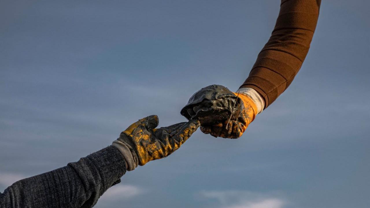 Yeni yol bağlantıları ve taşkın koruma çalışmalarına devam eden ekipler, su kaplumbağası olduğunu fark edince işi durdurdu.