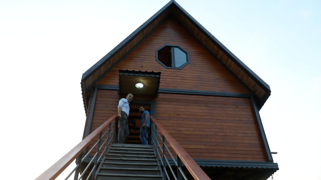 Kaporta ustası Çelik, merkeze bağlı Derebaşı köyündeki arazisinde ailesi için yabani hayvanların giremeyeceği ahşap ev yapmaya karar verdiğini söyledi.