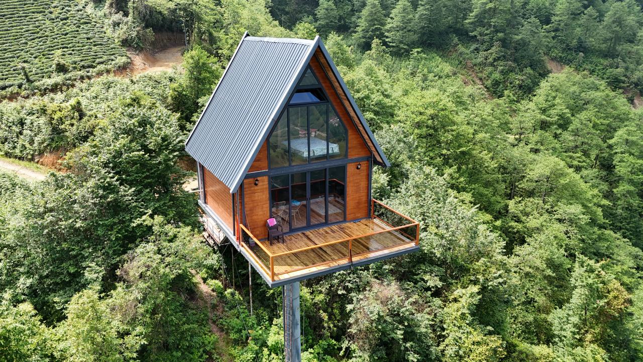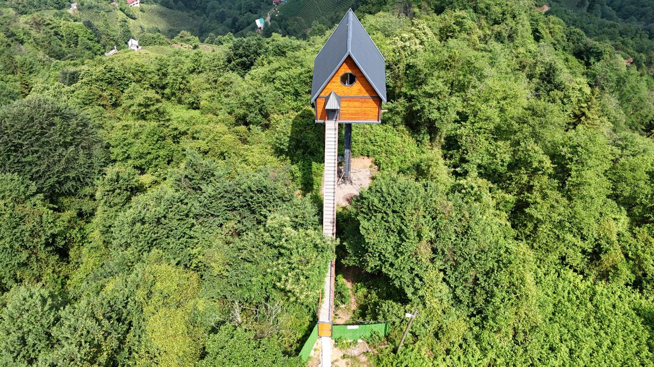 İlginç evlerle ilgili internette araştırma yaptığını anlatan Çelik, "12 metre tek direk üzerine böyle bir yapı yok. Onun vermiş olduğu bir huzur var. Olmayan bir şeyi başarmış oldum." diye konuştu.