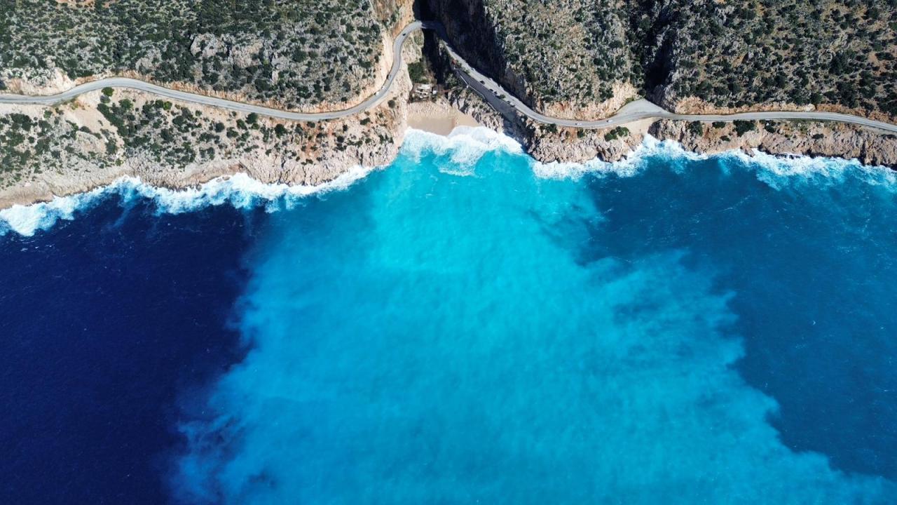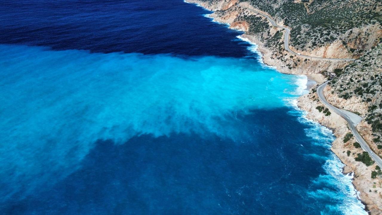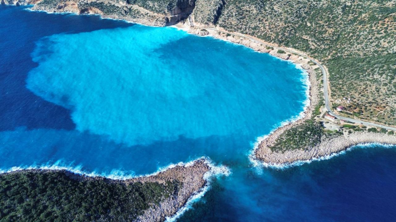 İlçedeki yağışın ardından kanyondan akan yağmur suyu, ünlü Kaputaş Plajı`nda denizle buluştu. Denizde oluşan açık mavi, turkuaz ve lacivert gibi renk geçişleri görsel bir şölen sundu.