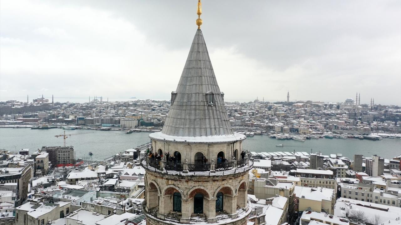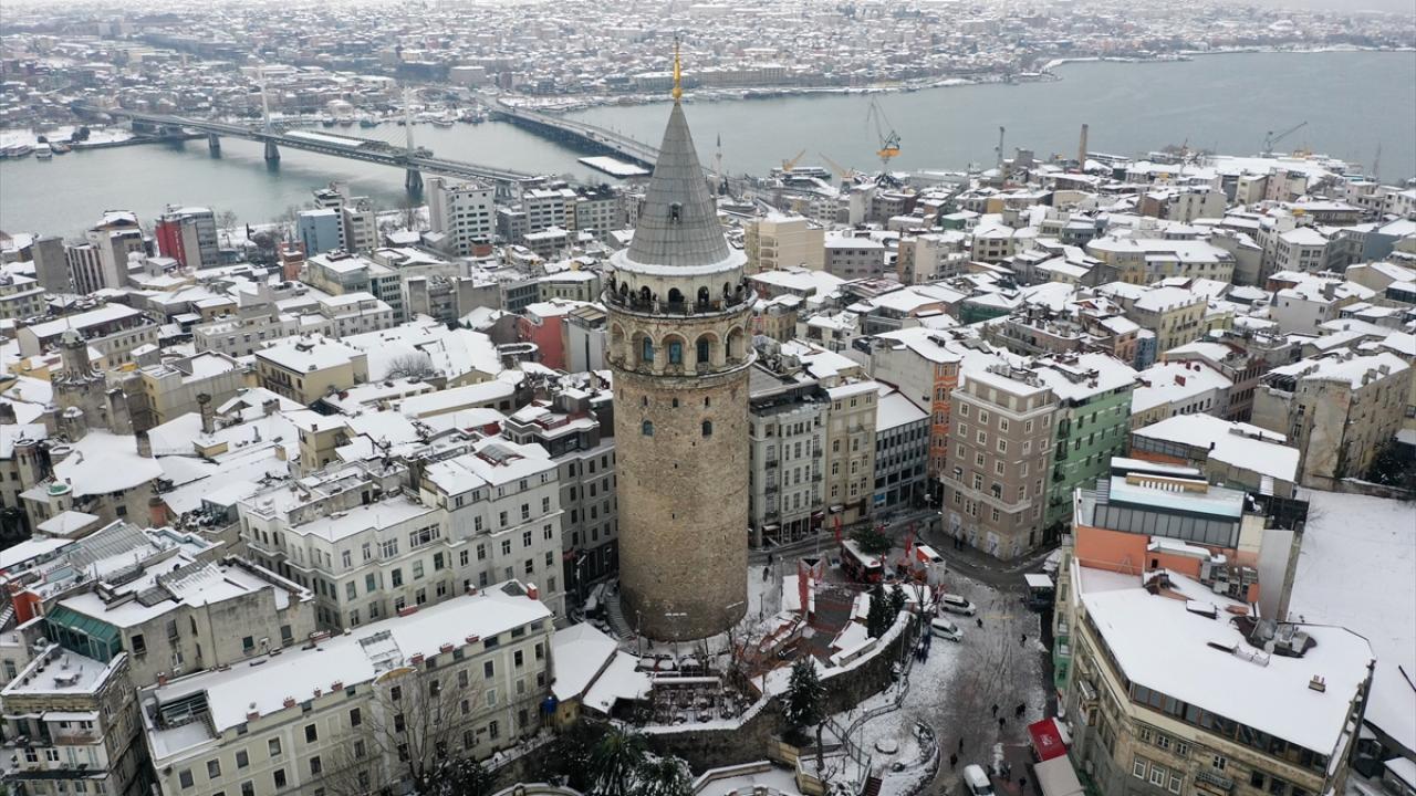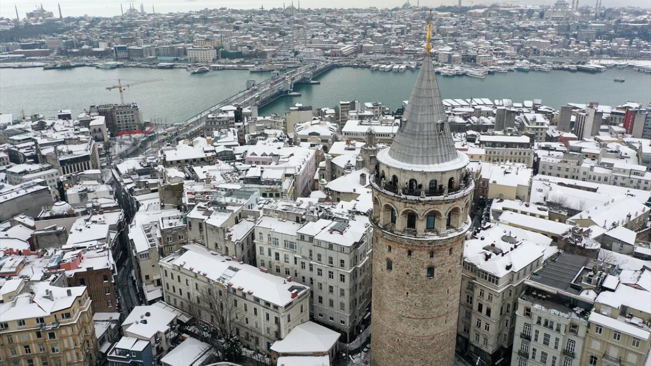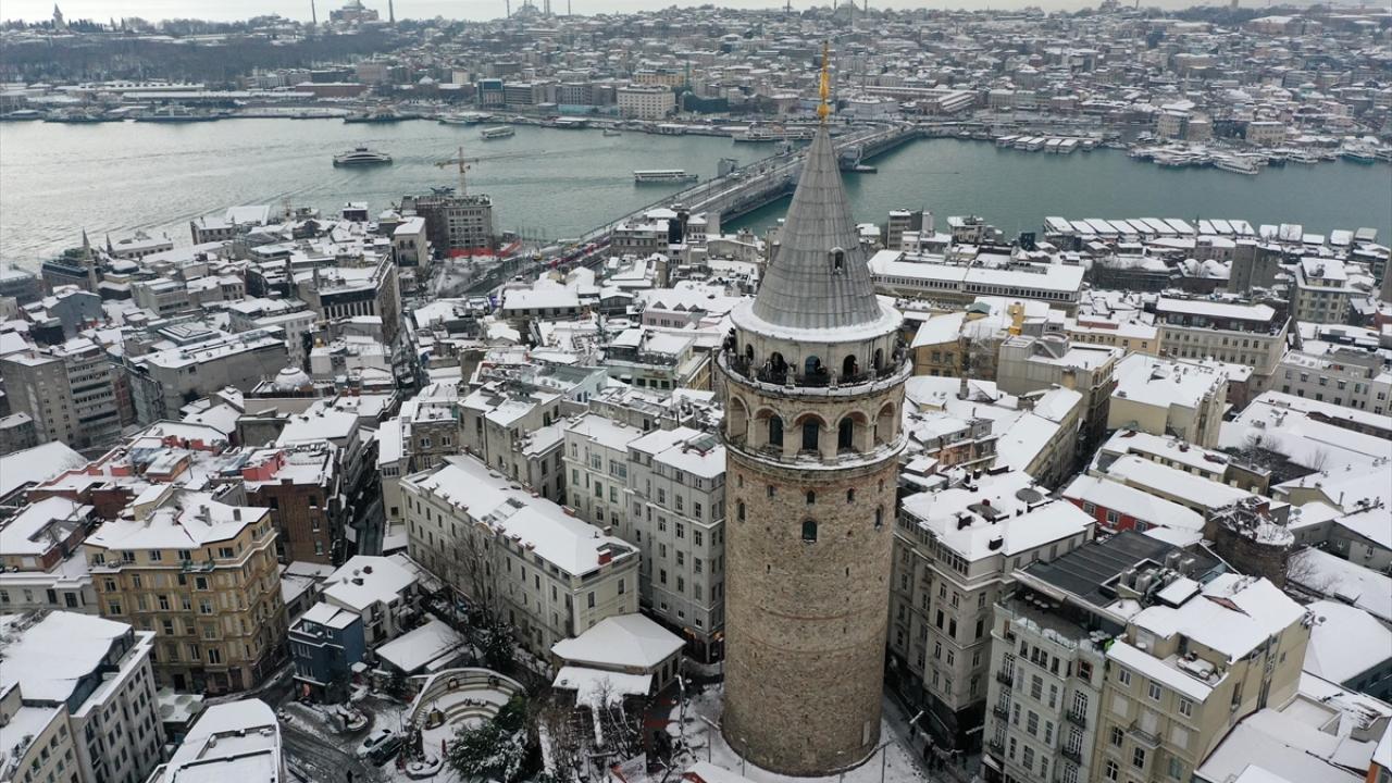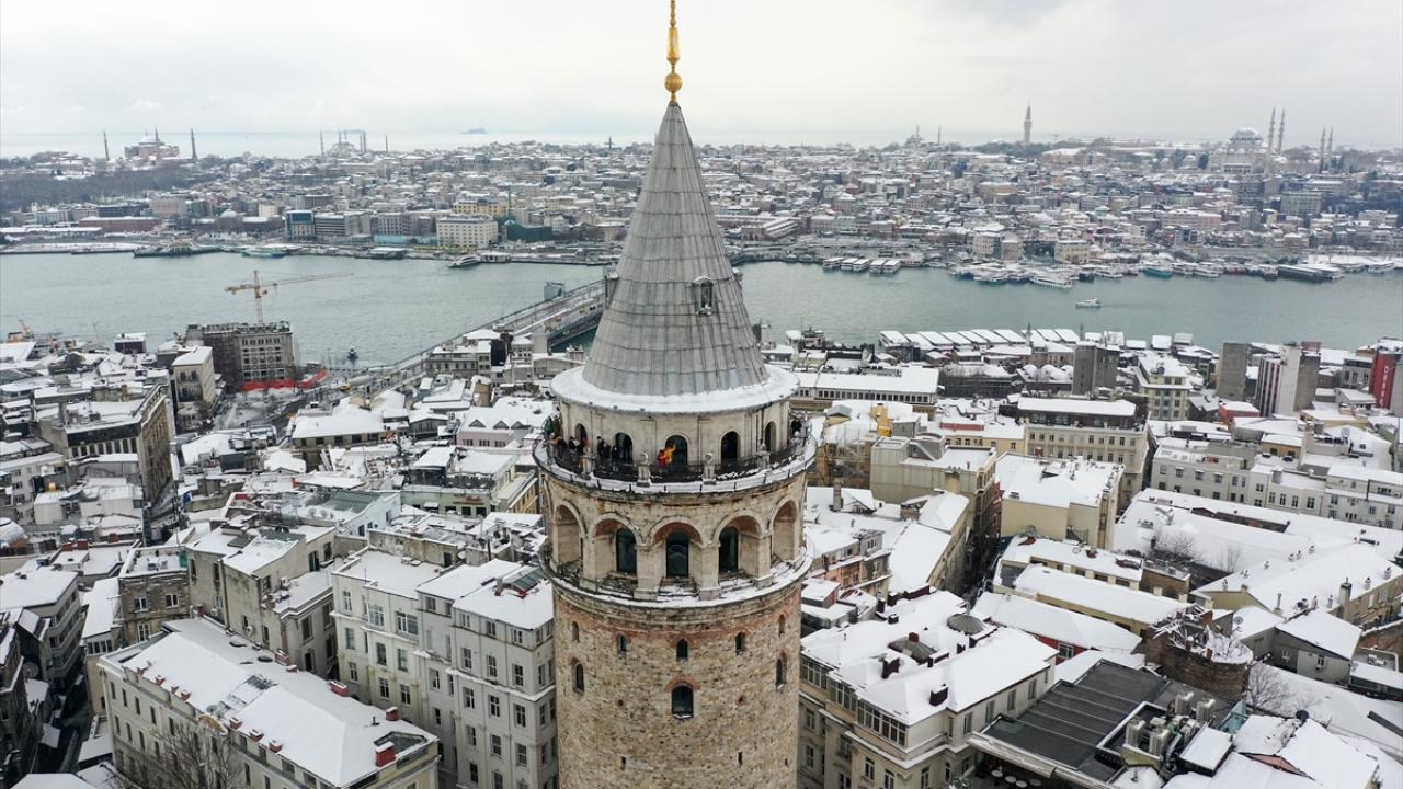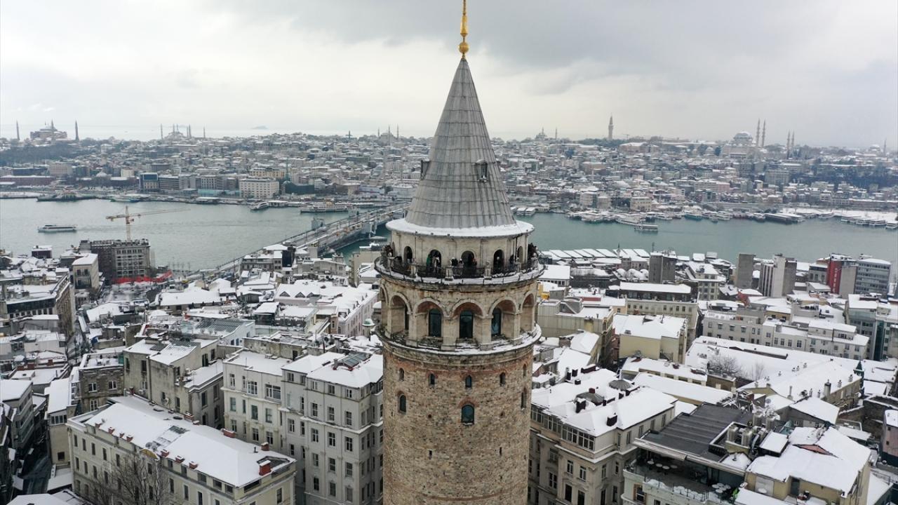 İstanbul'da kar yağışı Galata Kulesi ve çevresinde etkili oldu.