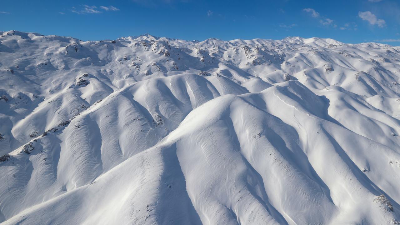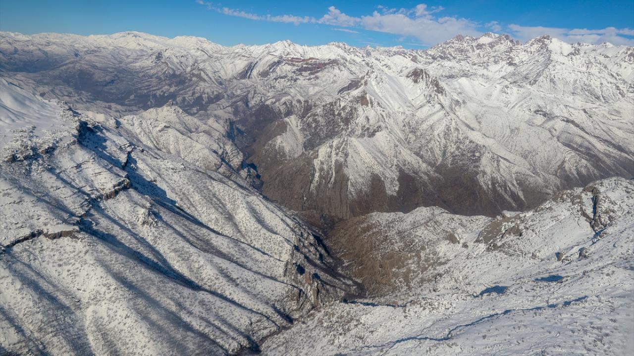Hakkari'nin Yüksekova ilçesinde yağış sonrası beyaza bürünen doğa ve yüksek kesimlerin kar altındaki eşsiz görüntüsü helikopter ile havadan görüntülendi.