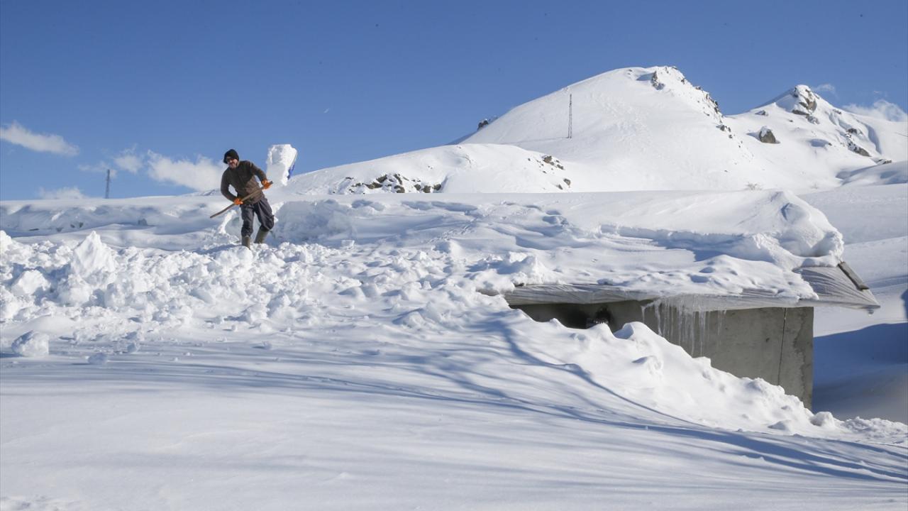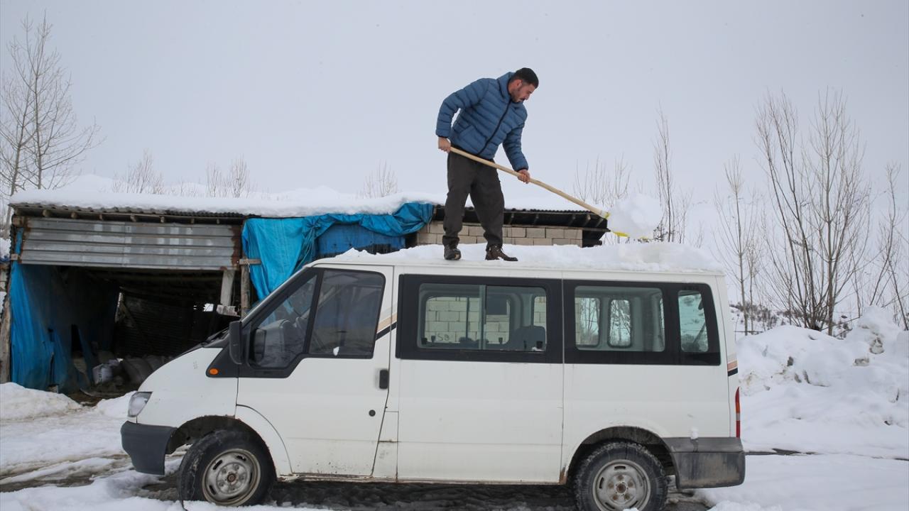 Günün büyük bölümünü geçim kaynakları olan hayvanlarına bakarak geçiren mahalle sakinleri, karla kaplanan ev ve ahırlarının çevresinde ve damlarda biriken karı temizliyor.