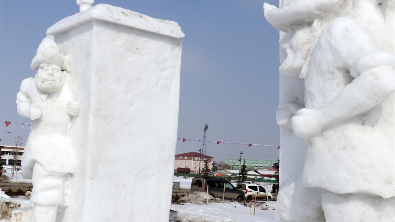 Ekip, masal kahramanları Keloğlan, Hacivat, Karagöz, Nasreddin Hoca ve yöreye ait kepenek giymiş çobanın yanı sıra 5 bin 137 metre rakımı ile yurdun en yüksek noktası olan Ağrı Dağı ile Doğubayazıt ilçesi Telçeker köyü yakınlarında olduğuna inanılan Nuh`un Gemisi`nin de kardan heykellerine yapıp festivale hazır hale getirdi.