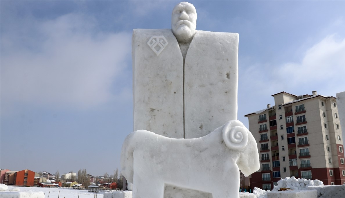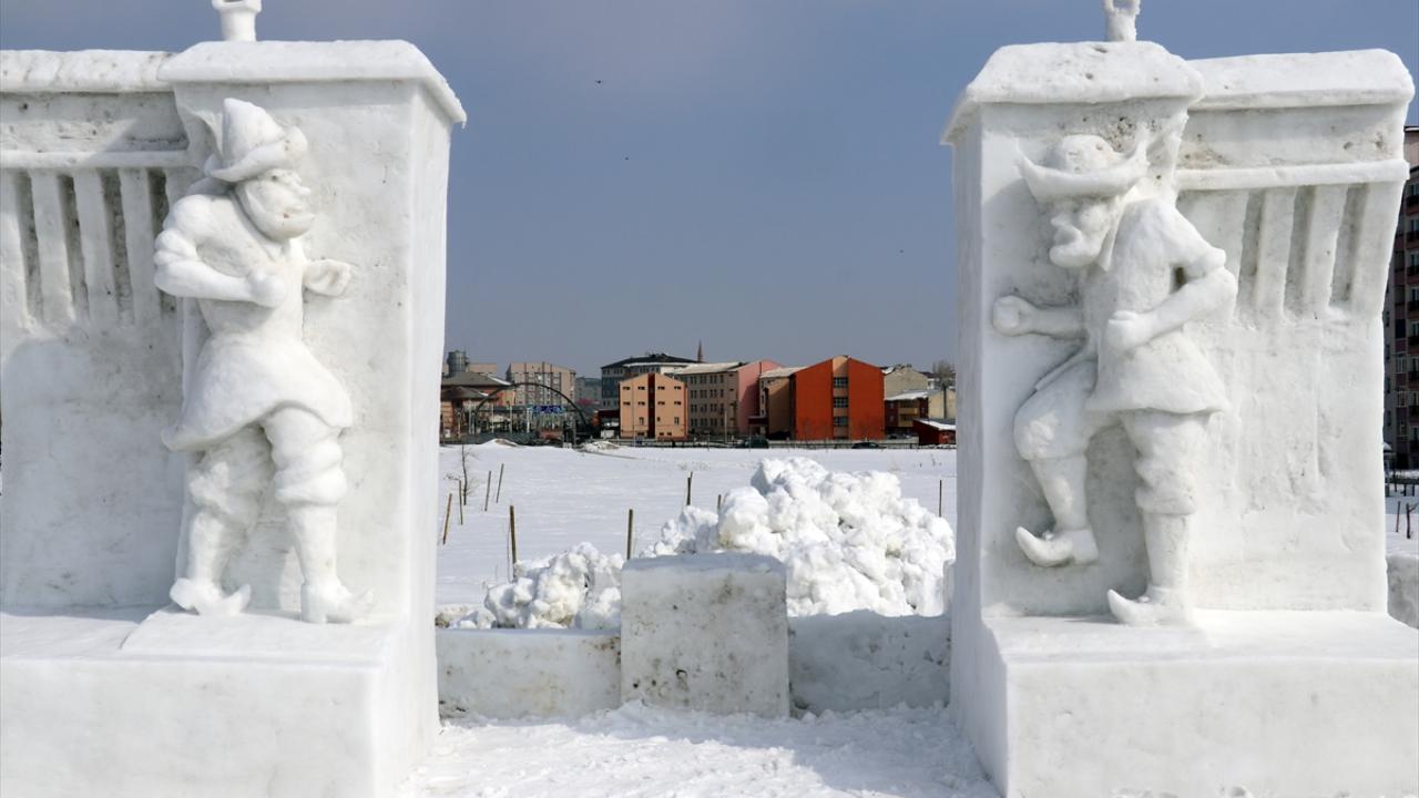 Ağrı'da yarın başlayacak 2. Kar Festivali'nde sergilenecek ve Ağrı Dağı ile Nuh'un Gemisi'nin yanı sıra masal kahramanları Keloğlan, Hacivat, Karagöz, Nasreddin Hoca'nın heykelinin de yer aldığı 7 kardan heykelin yapımı tamamlandı.