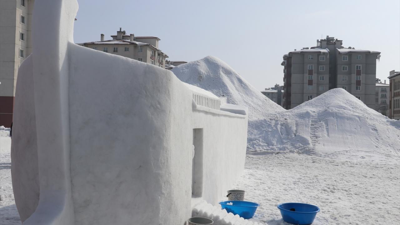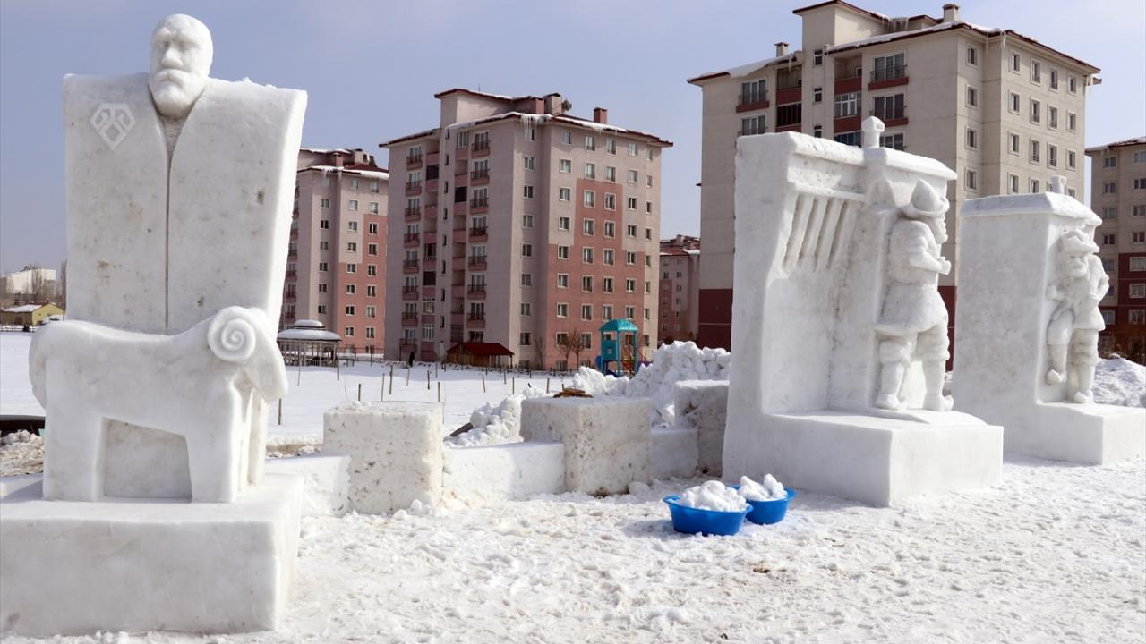 Millet Bahçesi`nde "Anadolu Masal Kahramanları" temasıyla gerçekleştirilecek festival öncesi, kardan heykeller yapılması için üniversitede görevli öğretim üyeleri ve öğrencilerden heykeltıraş ekibi oluşturuldu.