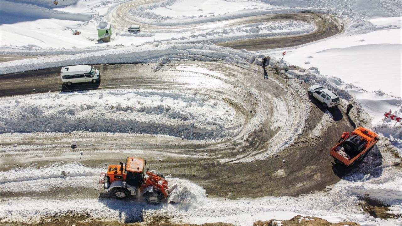 Kar kalınlığının yer yer yarım metreye ulaştığı bölgede 6 iş makinesiyle yürütülen çalışma sonucu yolun tek şeridi ulaşıma açıldı.