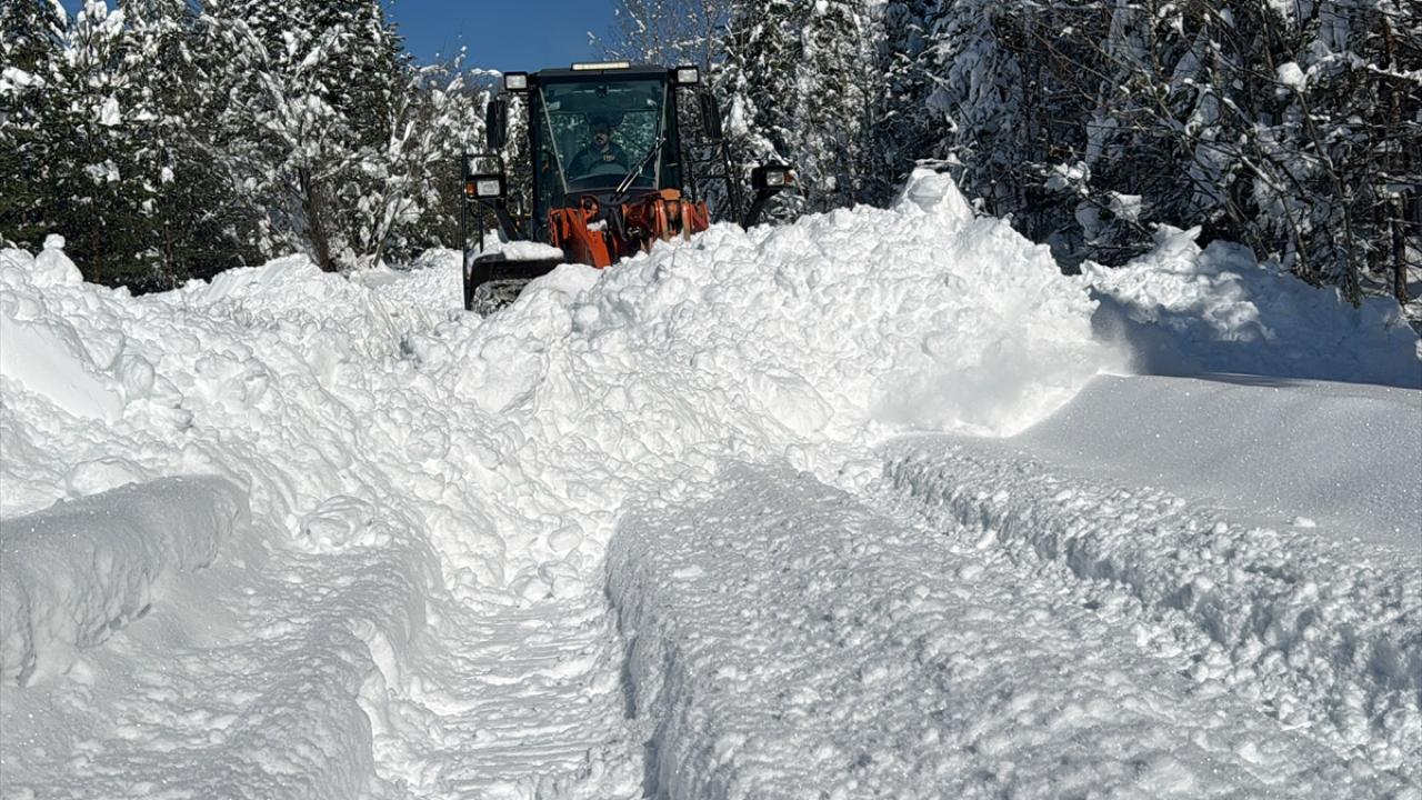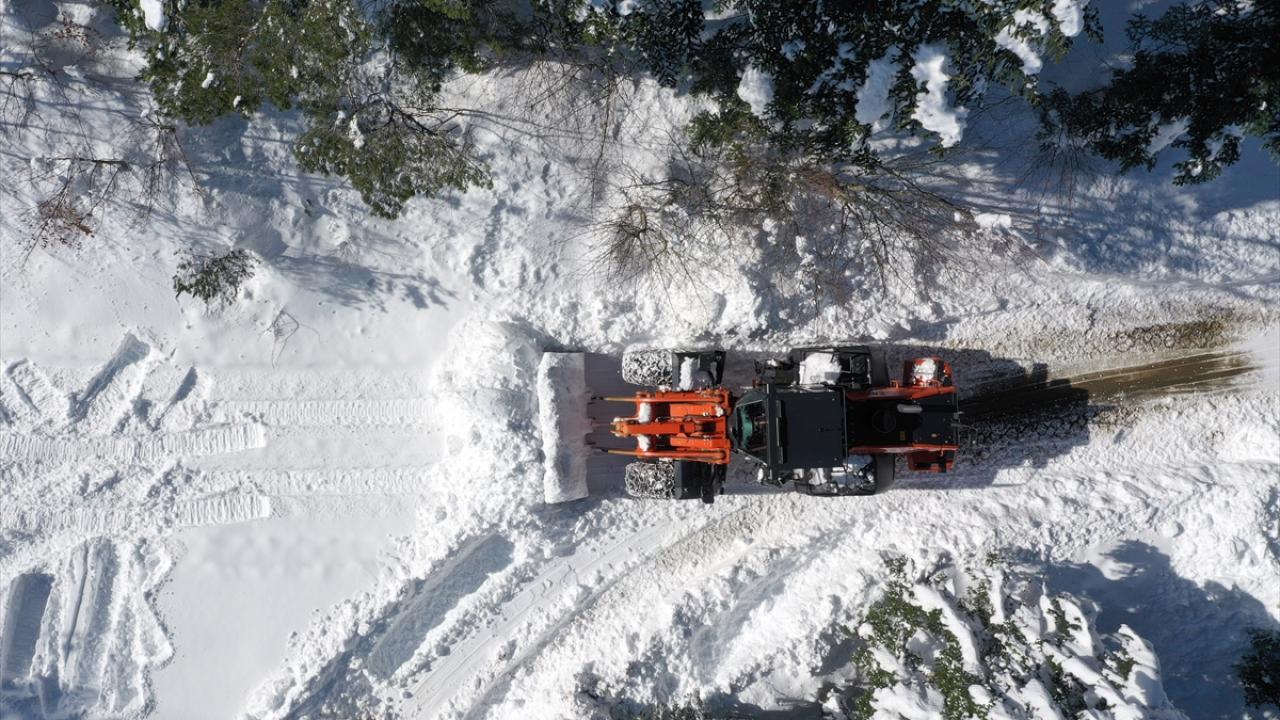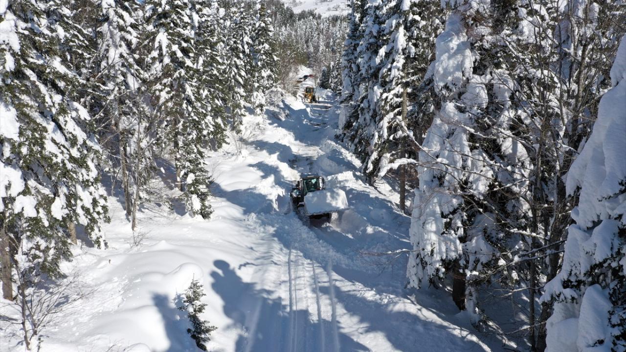 Sabah erken saatlerde mesaiye başlayan ekipler, kar kalınlığının yer yer 1,5 metreyi geçtiği dağ yollarında mücadele veriyor.