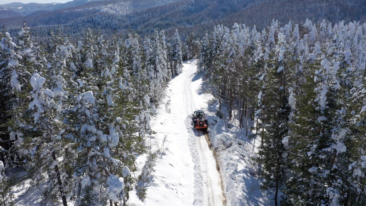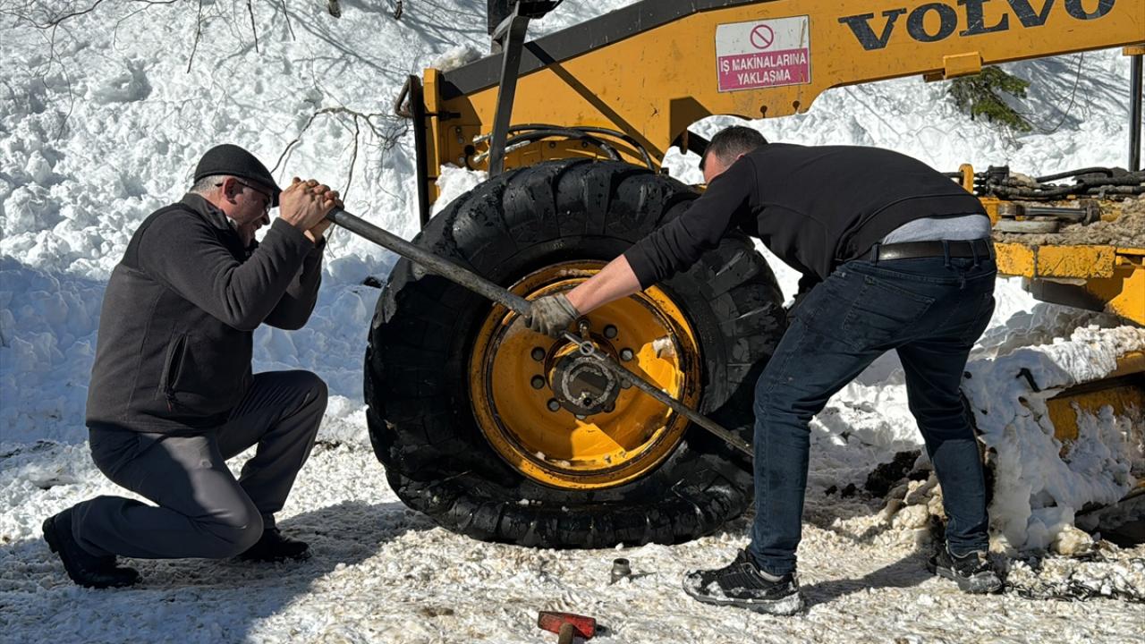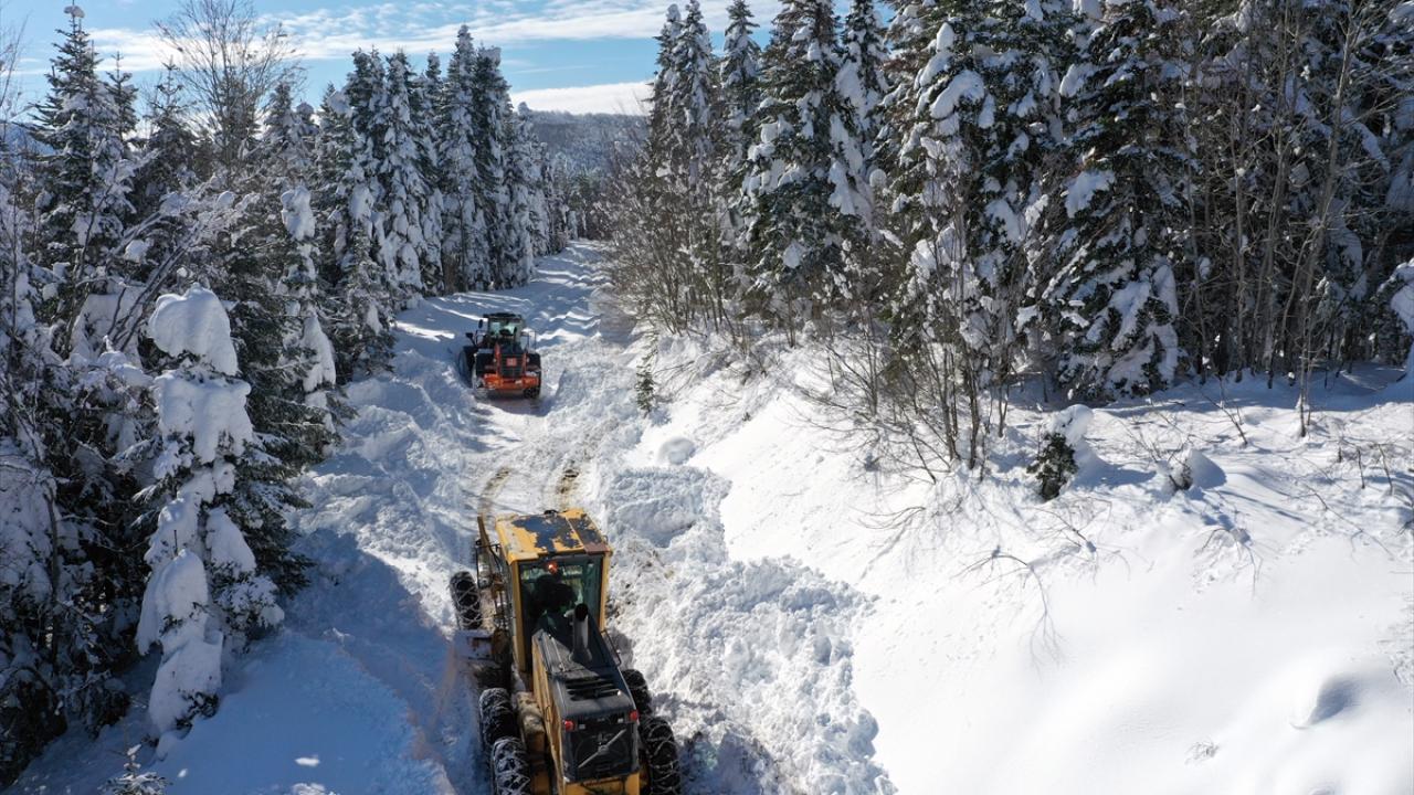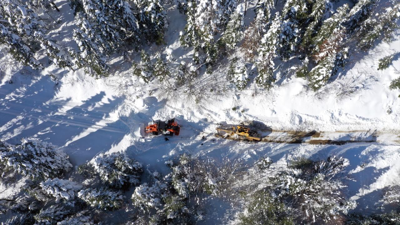 Sabah erken saatlerde mesaiye başlayan ekipler, kar kalınlığının yer yer 1,5 metreyi geçtiği dağ yollarında mücadele veriyor.
