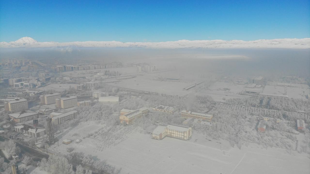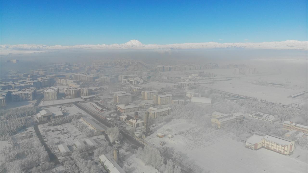 Kar ve sisle kaplanan Ağrı havadan görüntülendi