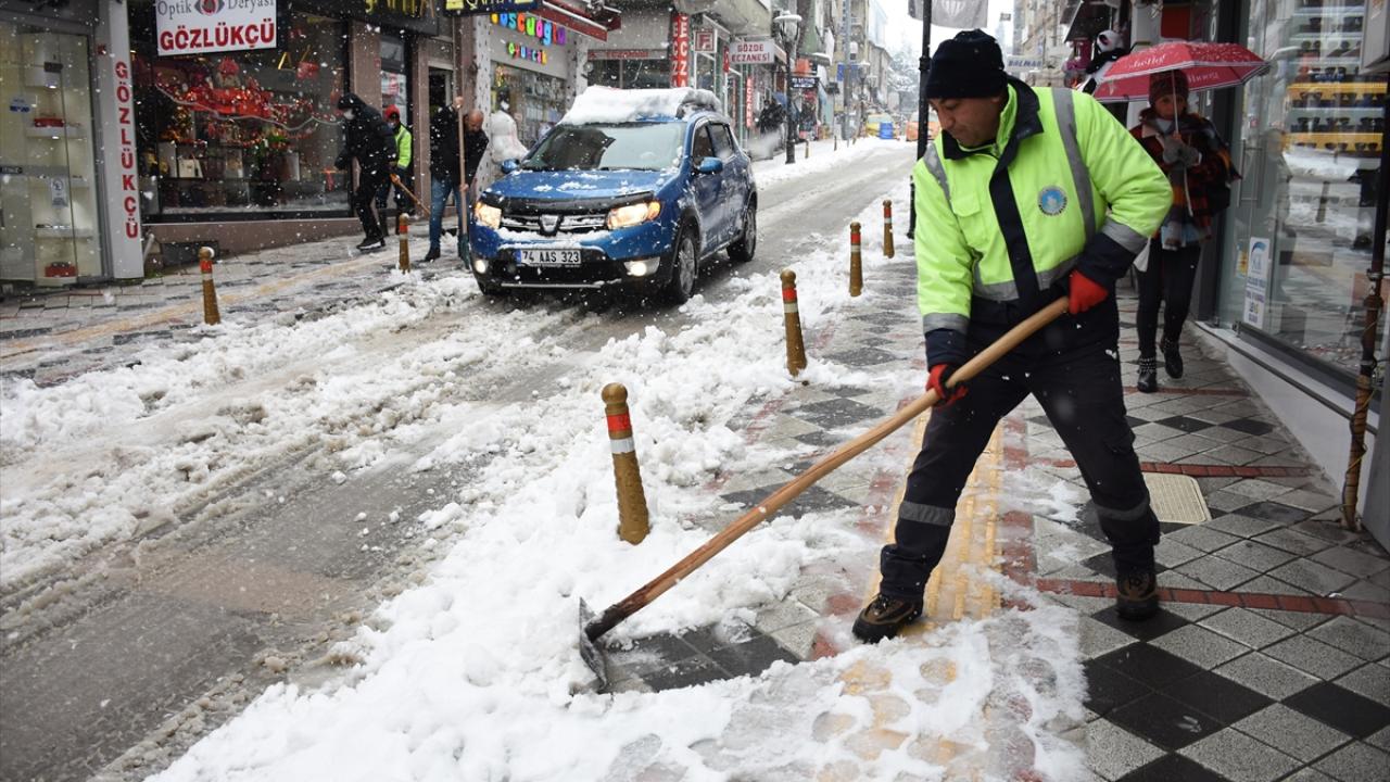 Kentte yağışın ardından kar kalınlığı yüksek kesimlerde 60 santimetreye yaklaşırken, karın etkili olduğu kent merkezinde de belediye ekipleri yollarda ve kaldırımlarda temizlik çalışması yürütüyor.