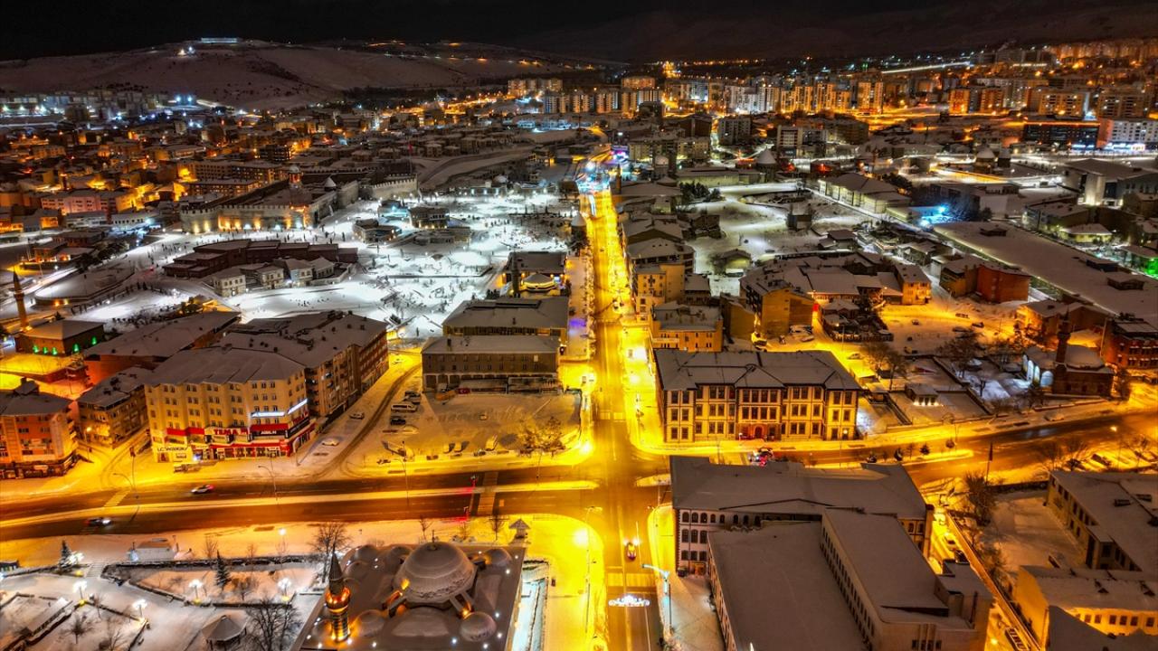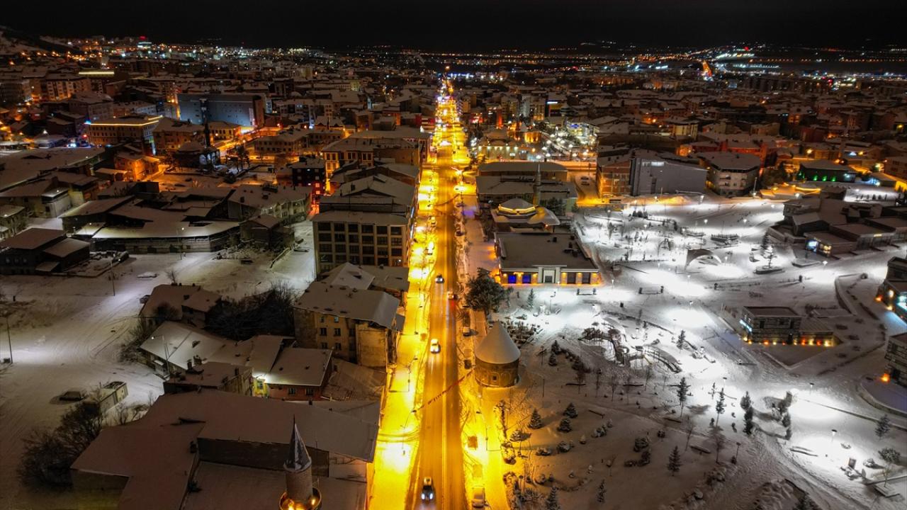 Karın etkisiyle farklı güzelliğe kavuşan tarihi mekanlar ve kent merkezi, dronla havadan görüntülendi.