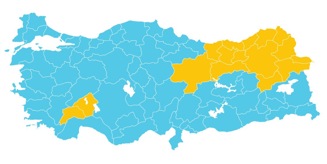 Meteoroloji Genel Müdürlüğü'nden 16 ile "sarı" kodlu uyarı yapıldı. Vatandaşlardan ani sel, su baskını, yıldırım, yerel dolu yağışı, hortum riski, yağış anında kuvvetli rüzgar ile kar yağışı görülecek yerlerde buzlanma ve don olayına bağlı ulaşımda aksama gibi olumsuzluklara karşı dikkatli ve tedbirli olmaları istendi.