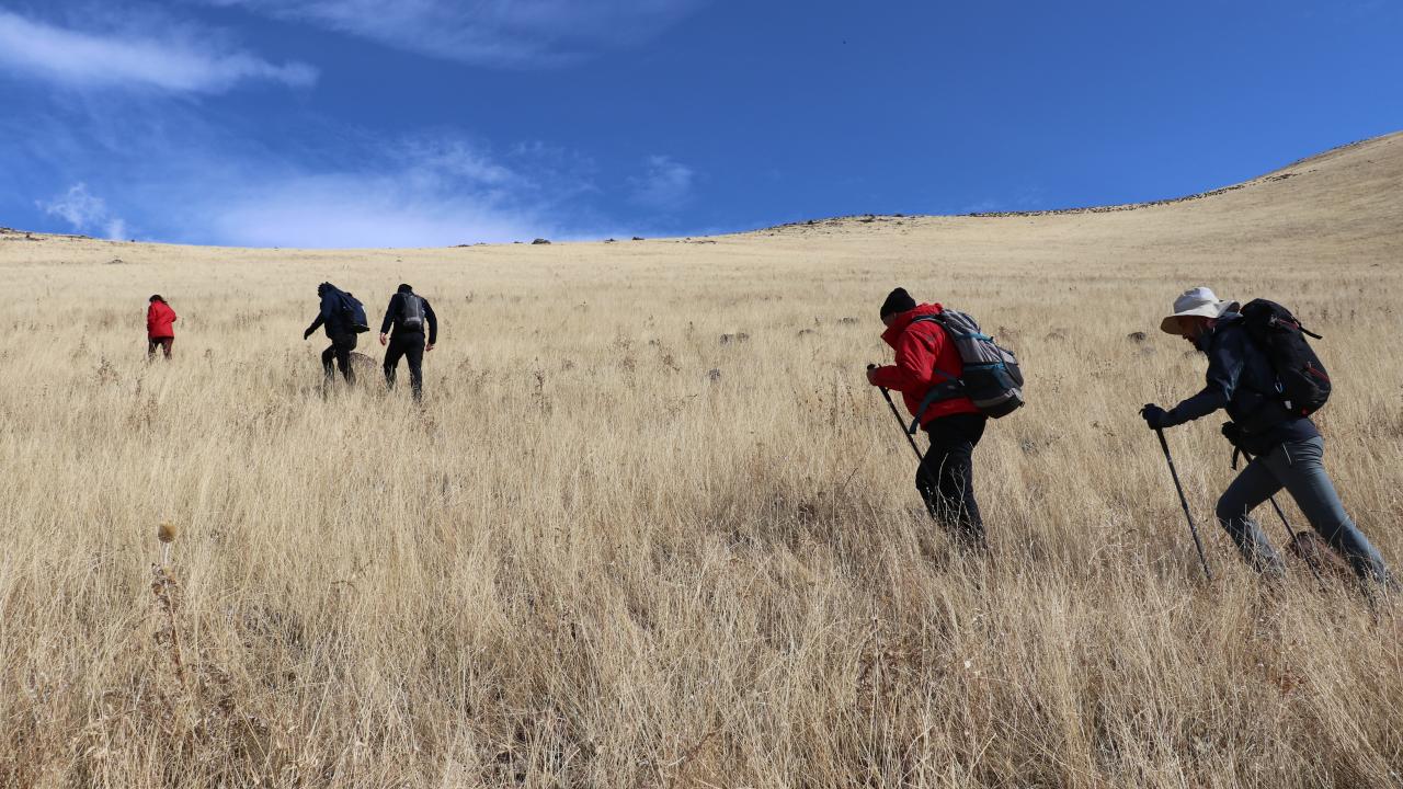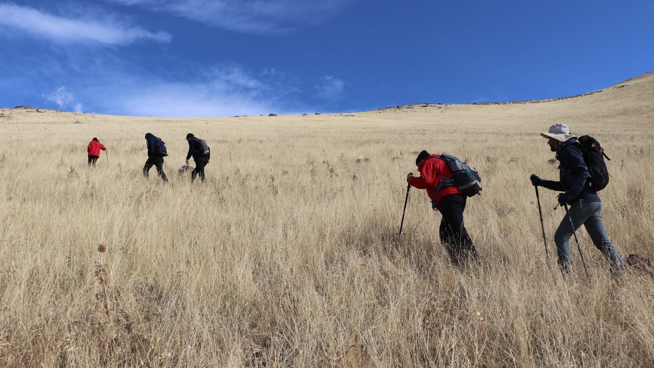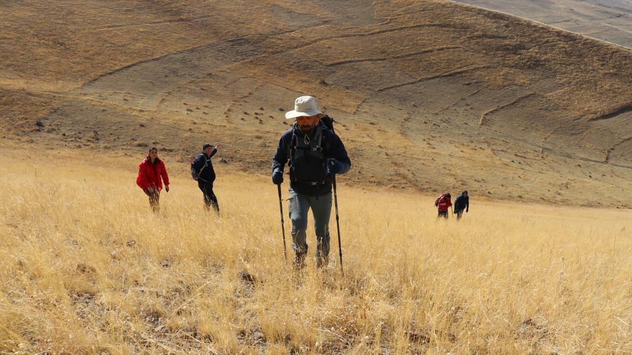 Buradan tırmanışa geçen dağcılar, yaklaşık 4 saatlik yürüyüşün ardından 3050 metre rakımlı Mezra Dağı`nın zirvesine ulaştı.