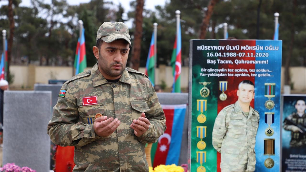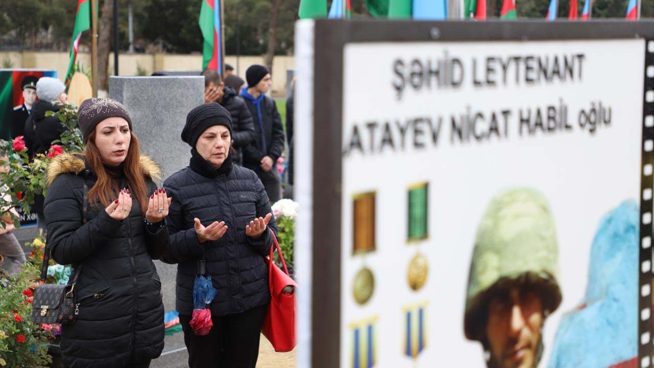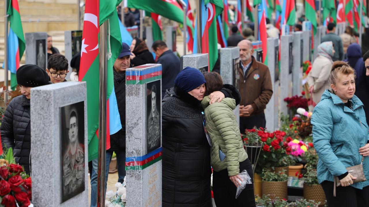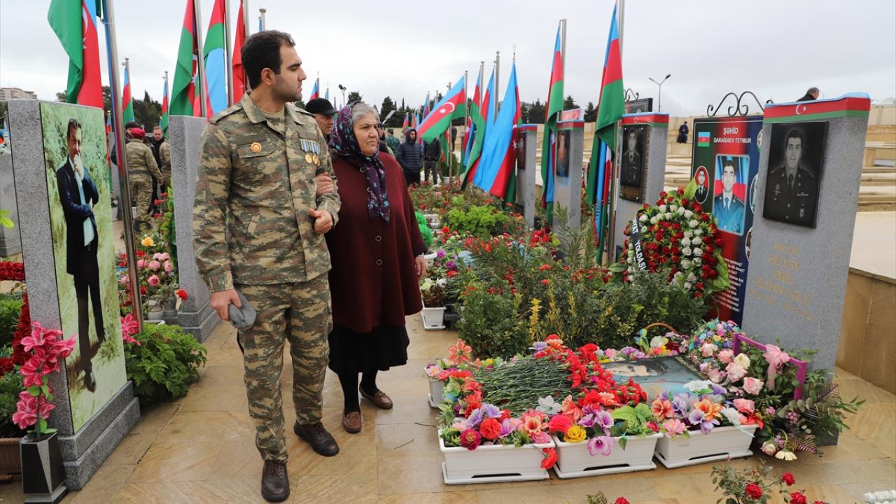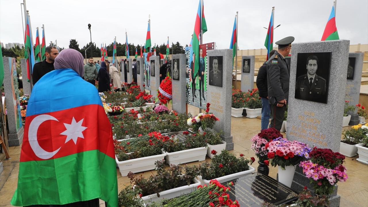 Bakü`de 2. Fahri Hıyaban`daki şehitliğe gelen şehit yakınları ve vatandaşlar, buradaki mezarlara çiçek bıraktı, dualar etti.