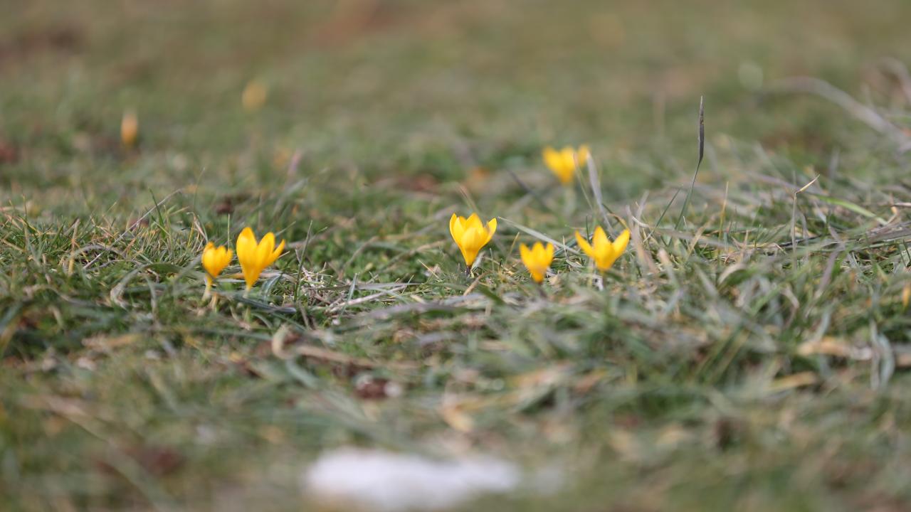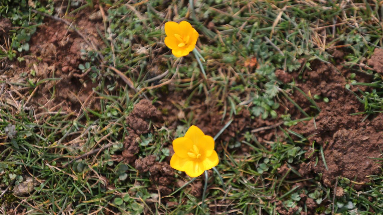 Karabük'ün Eflani ilçesinde baharın müjdecisi olarak bilinen çiğdemler erken çiçek açtı.