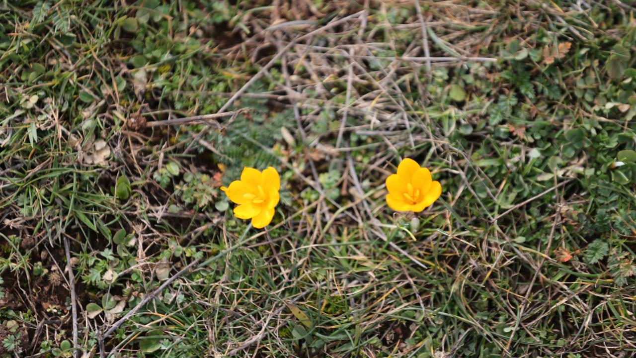 Karabük'te açan çiğdemler baharı müjdeledi