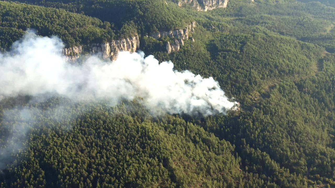 İhbar üzerine bölgeye, Orman İşletme Müdürlüklerine bağlı 11 arazöz, 2 su ikmal aracı, 2 helikopter, itfaiye ve iş makineleri ile 85 personel sevk edildi.