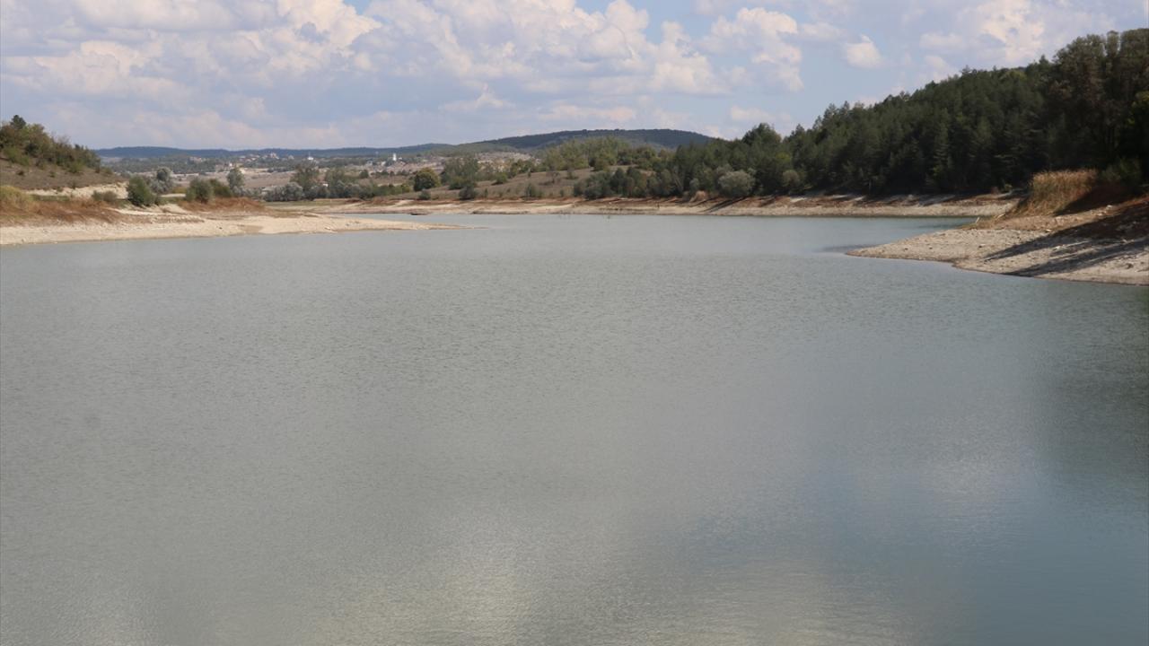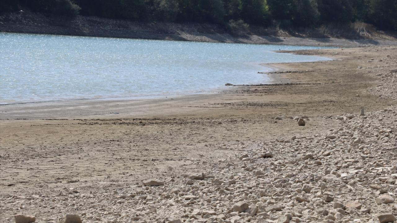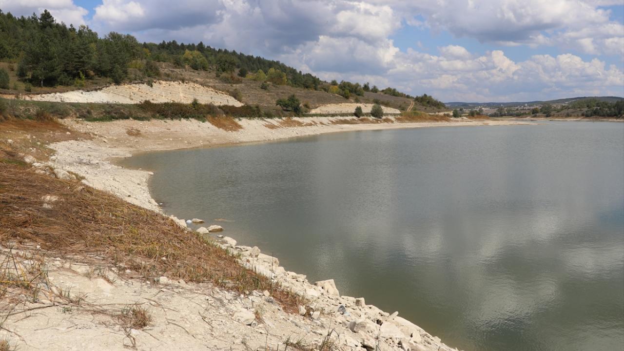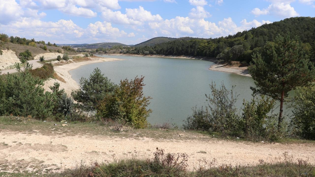 Vana değişimi için su seviyesi azaltılan gölet dronla görüntülendi.