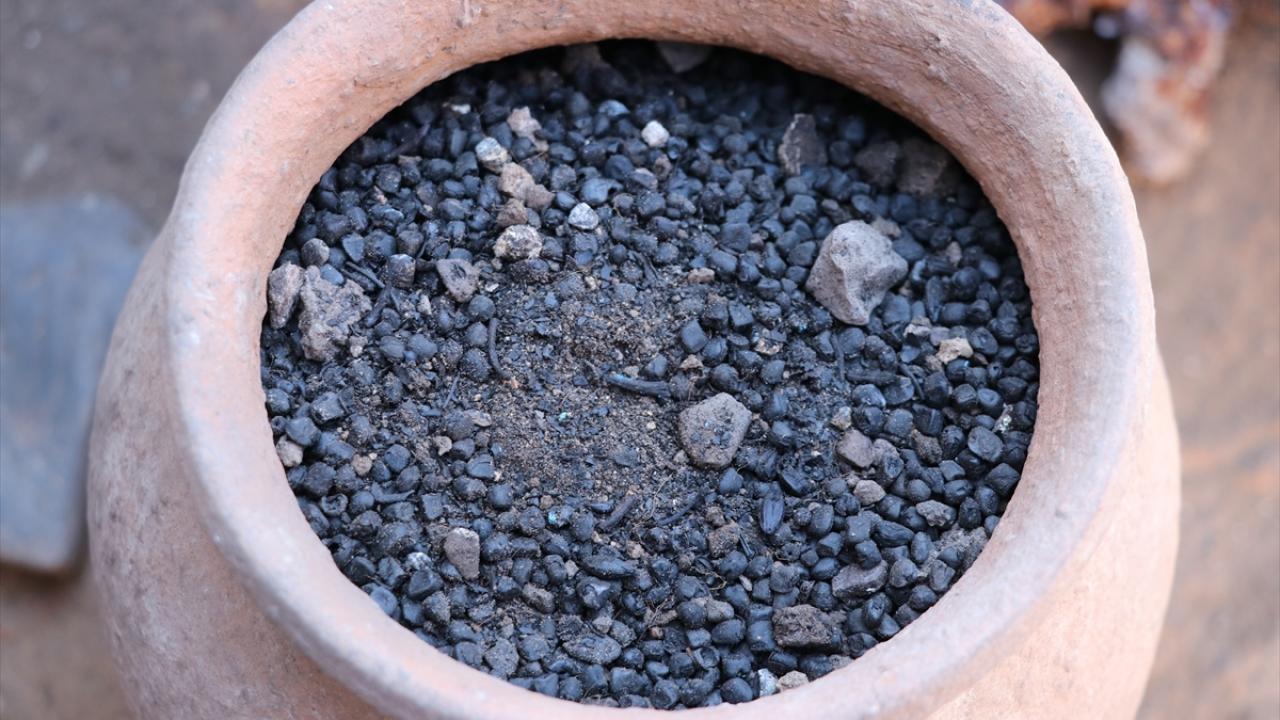 "Mutfağın ocak bölümü ortaya çıkarıldı. Hemen yanında ise içerisinde kaplar ve bu kapların 2 tanesinin içinde de tohum günümüze ulaştı. Uzmanlarıyla yapmış olduğumuz görüşmeler neticesinde tohumların cinslerini tespit ettik. Tohumların biri buğday, diğeri bezelye türü fiğ dediğimiz tohum. Diğeri ise yoğurt otu dediğimiz ot."