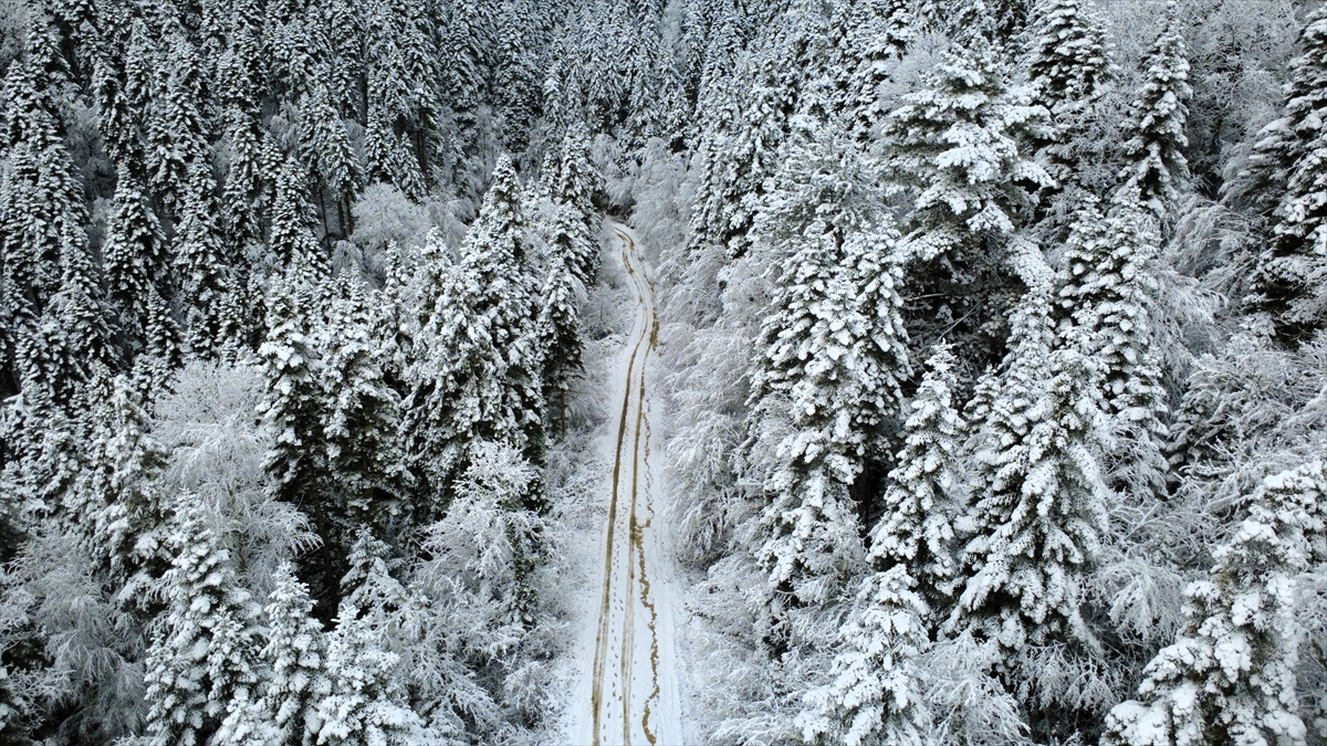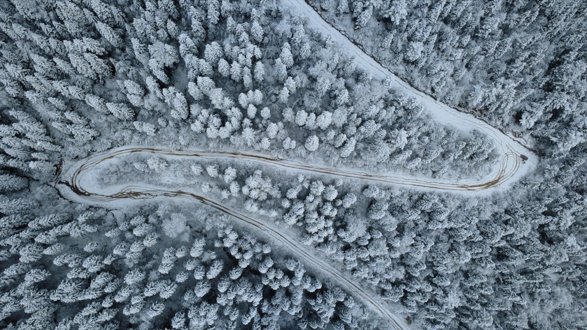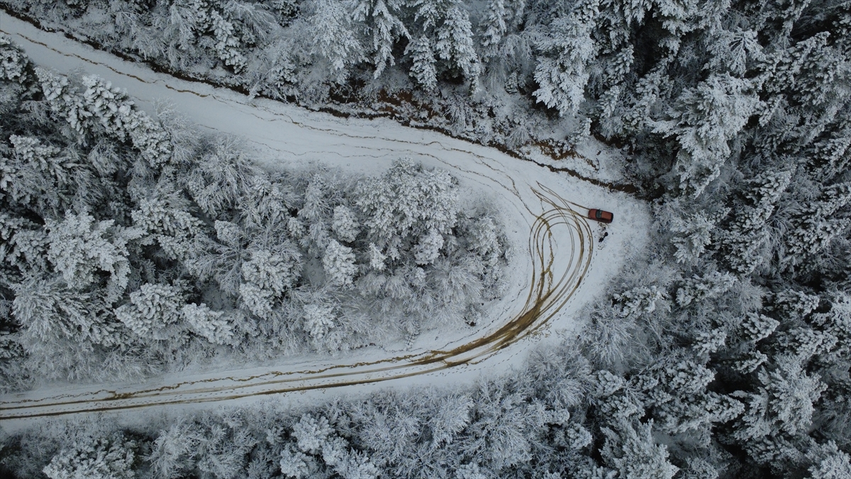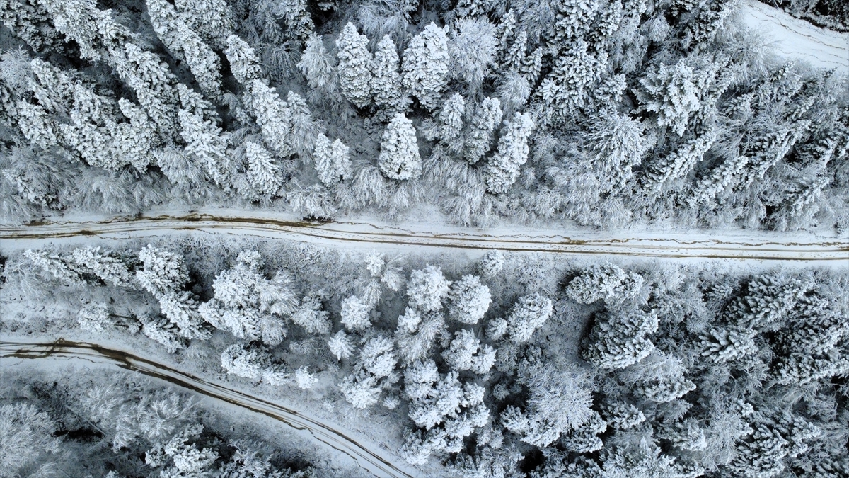 Kar yağışının ardından bölgede oluşan manzara dronla görüntülendi.