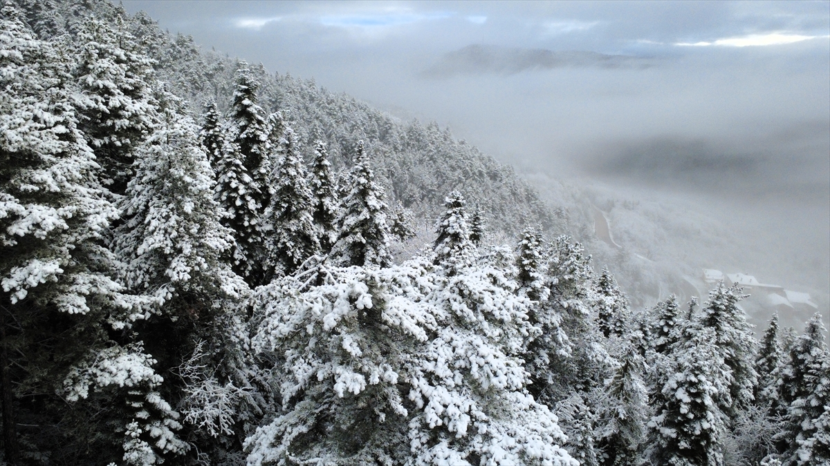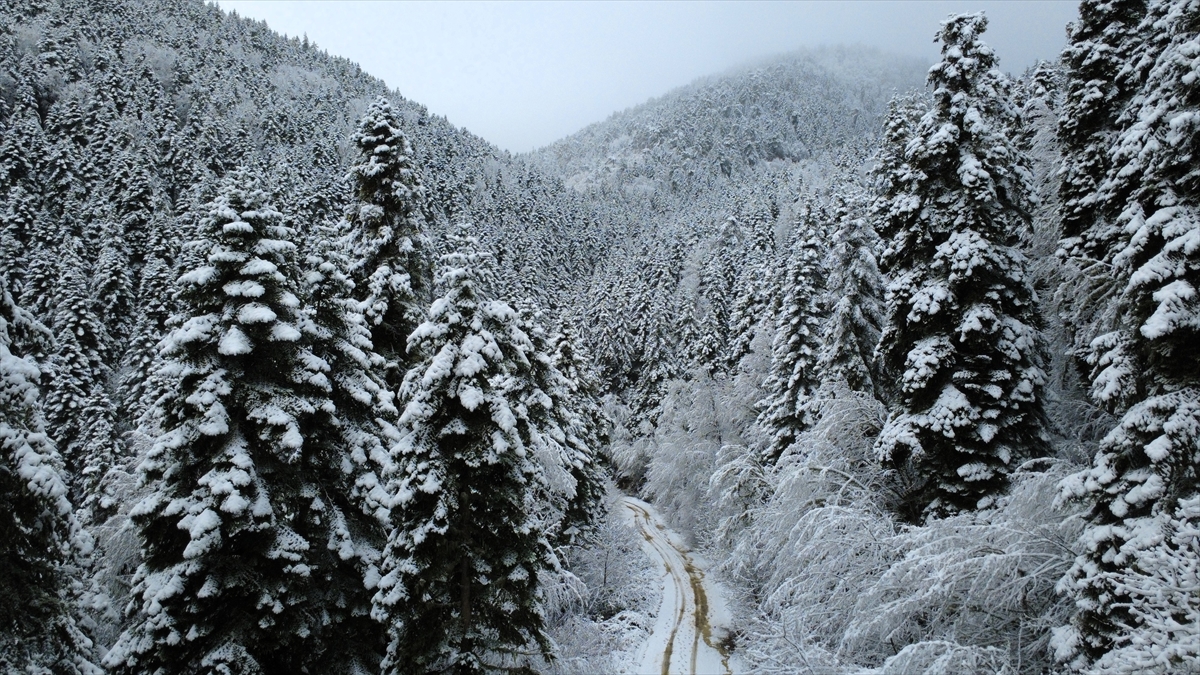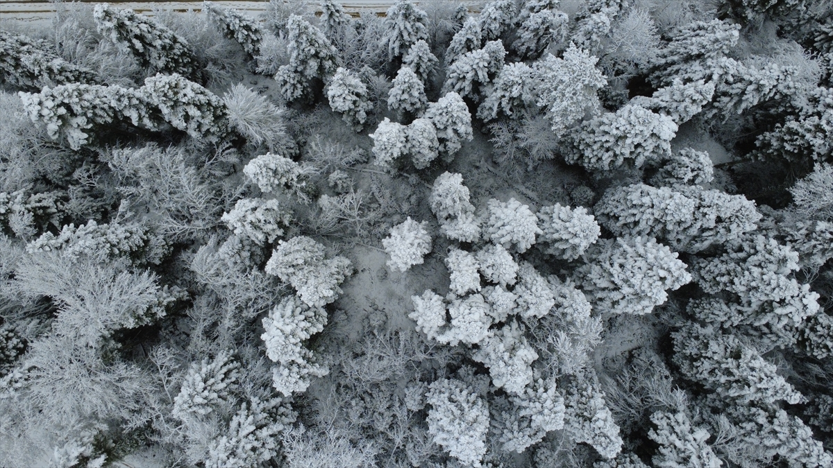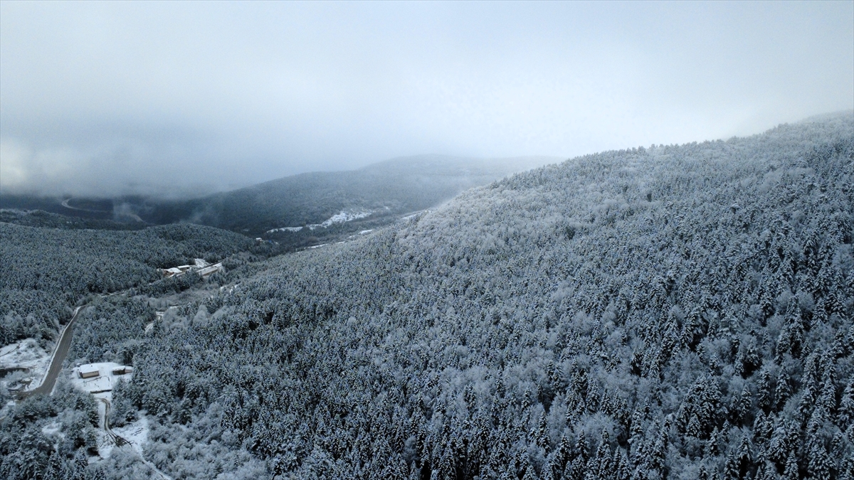 Kar yağışının ardından bölgede oluşan manzara dronla görüntülendi.