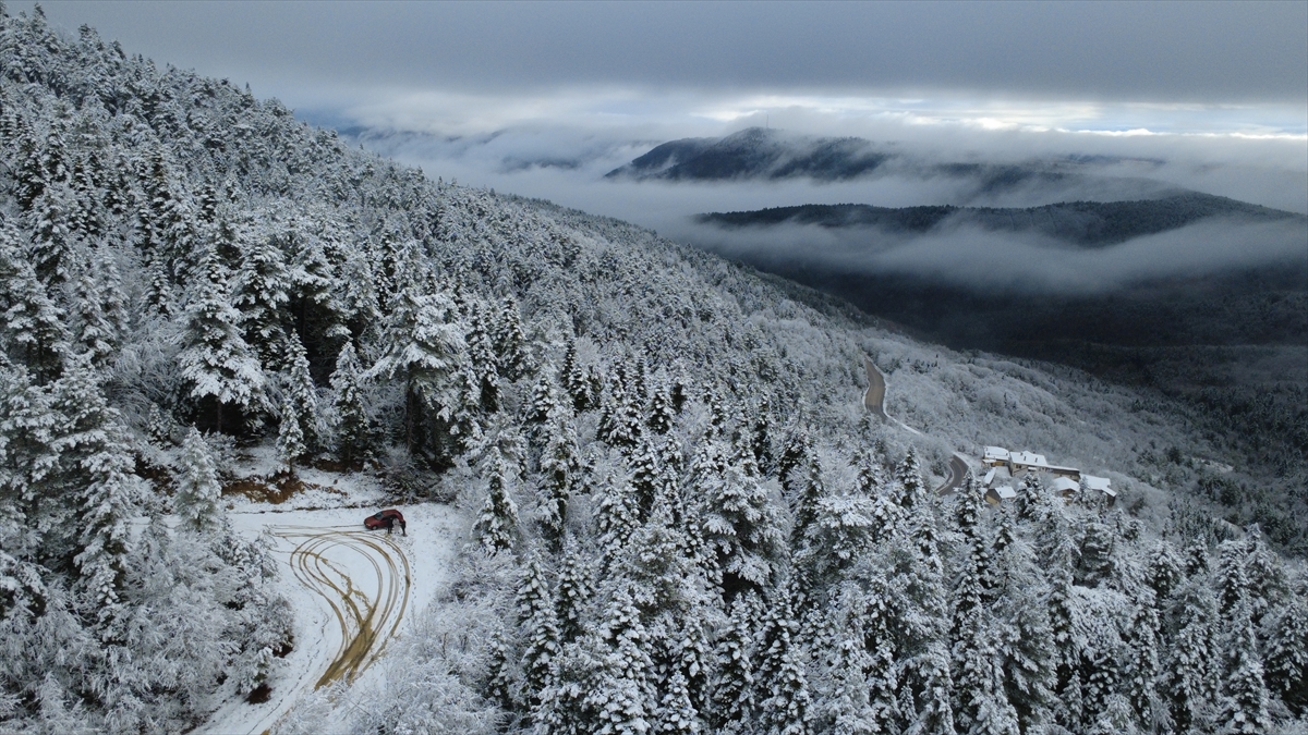 Safranbolu`nun Sarıçiçek Yaylası ve Ömür Ahmet Kıran mevkileri ile Karabük-Bartın kara yolunun 1030 rakımlı Ahmetusta Geçidi gece saatlerinden itibaren etkili olan yağışın ardından beyaza büründü.