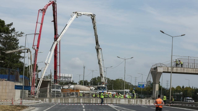 Eyüpsultan'da çöken üst geçidin enkaz kaldırma çalışmaları sürüyor