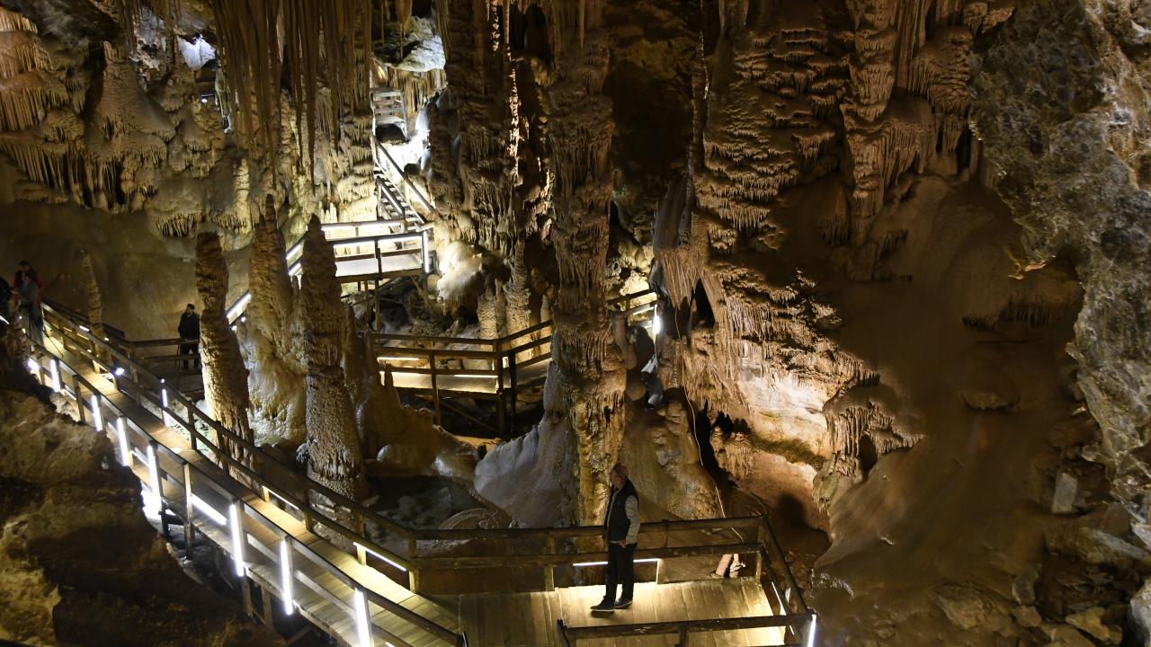 Gümüşhane'de iç nemlenmenin sağlanması, doğal oluşumlardaki beyaz rengin korunması amacıyla 3 ay boyunca ziyarete kapatılan mağara, yapılan bakım çalışmalarının ardından yeniden açıldı.